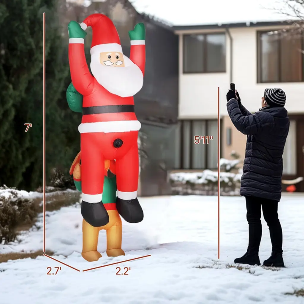 Yoocozz Playful Christmas Decoration - 7Ft Hanging Christmas Inflatable Santa With Dog, Christmas Blow Up Decoration With Built-in Led Lights