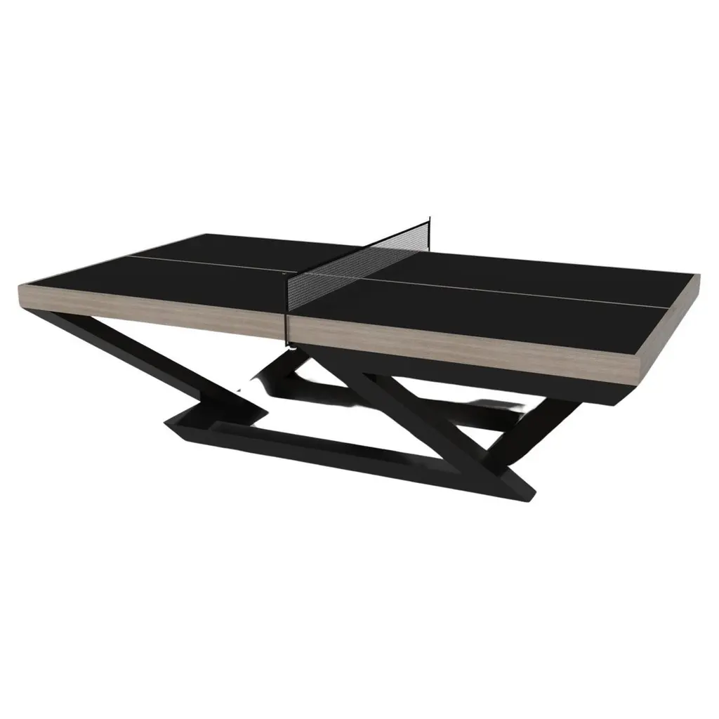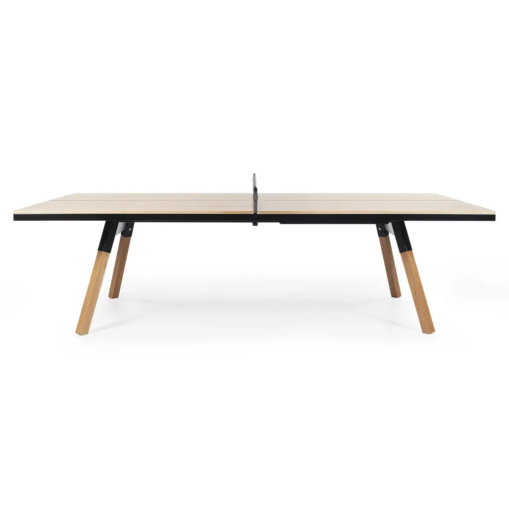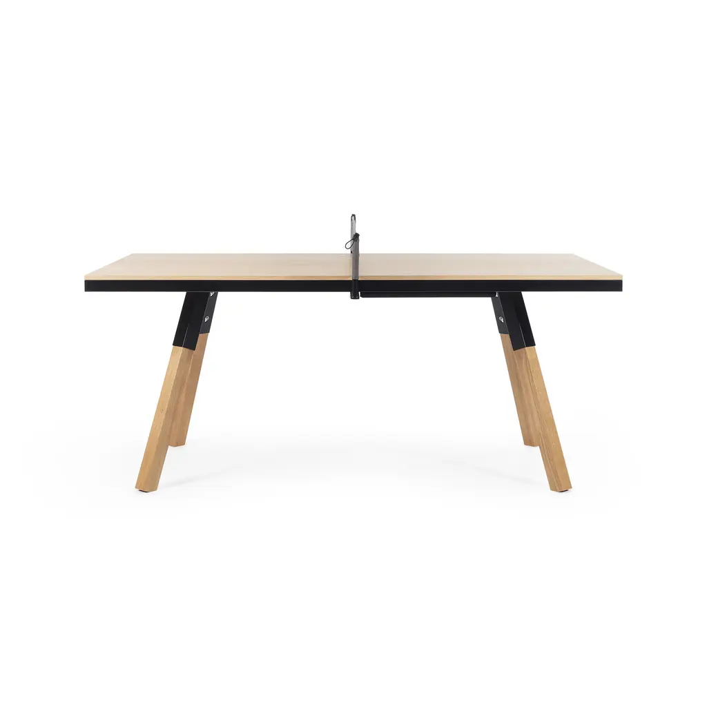 With our wood topped You and Me ping-pong table, we’ve taken our playful attitude indoors. Wood offers comfort and elegance, while sportiness blends in seamlessly in new settings. There’s a place for everything with a You and Me. There’s a place for family meals and dinners with lots of friends. There’s a place for work meetings at the office. And, naturally, there’s a place for playing ping pong. Because this sport can also be enjoyed on wood. When the games are over, all the sporting elements – the net, the paddles and the balls – are stored in a discreet side drawer, completely out of sight. You can choose between two finishes: walnut or warm oak, each with their own special character. Wood topped versions are for indoor use only. Features