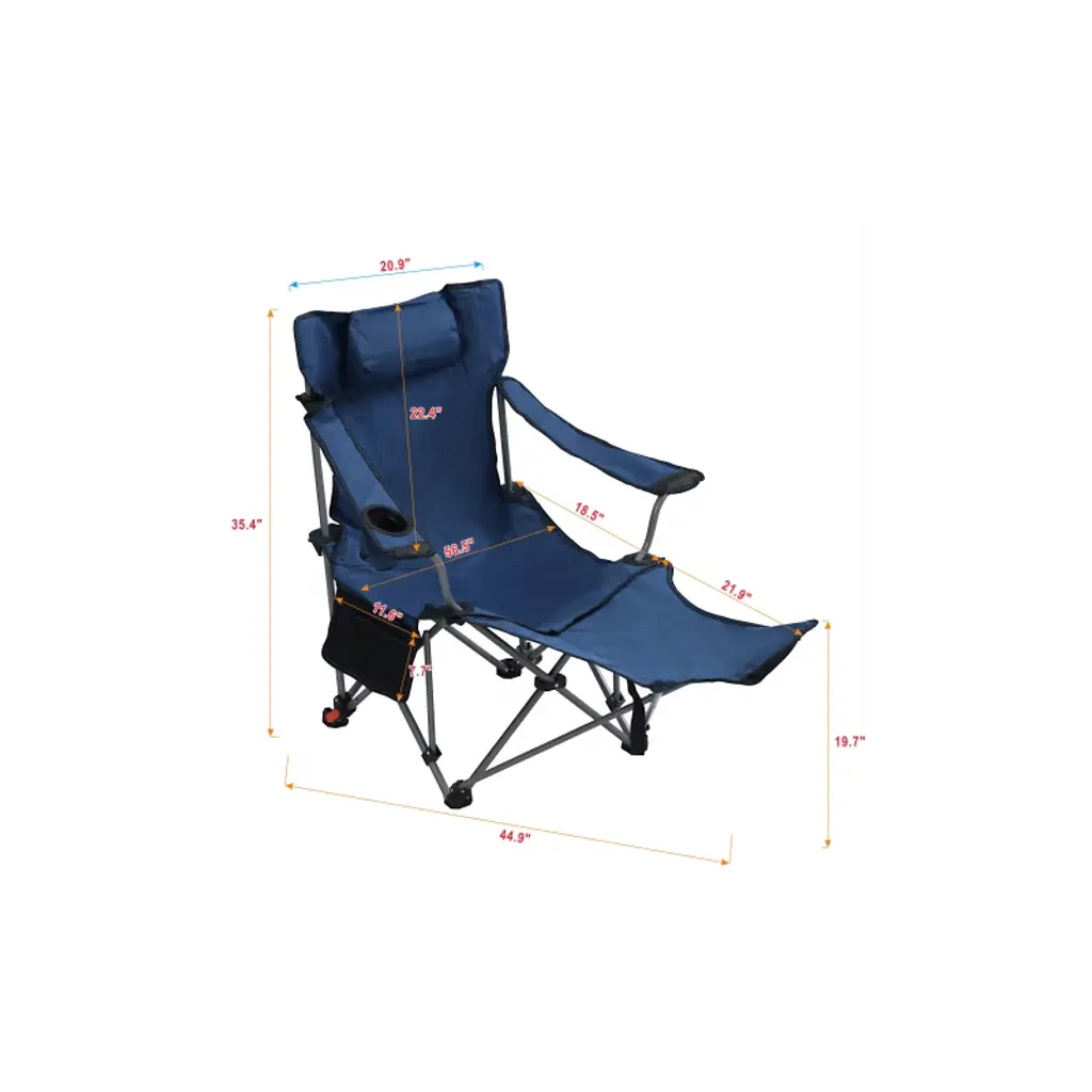 Yuhao Foldable & Portable Camping Chair With 3-level Reclining Adjustment - Side Pockets, Cup Holder & Carry Bag - Dark Blue