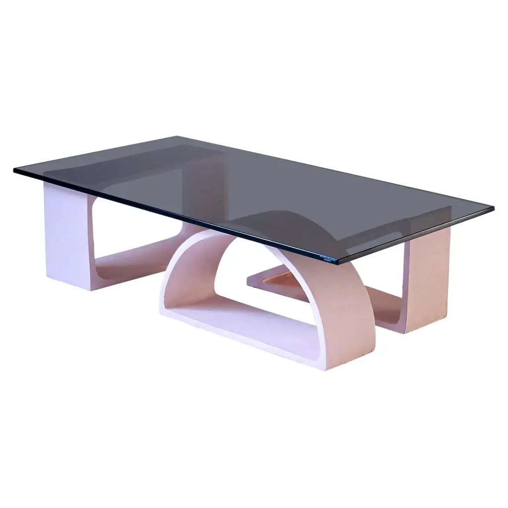 Zanotta Arabesco CM Table in Glass Top with Black Varnished Oak by Carlo MollinoBent plywood frame veneered with natural or black varnished oak; wax-finished varnish. The frame is attached to the top with an internally threaded screw. Top shelf in 3/8” thick tempered plate glass; bottom shelf in 5/16” thick tempered plate glass, both either extra-clear, matching the frames in natural oak or in smoky grey plate glass, matching the black varnished oak frame. Additional Information:Material: Glass, plywoodTop finish: Smoky grey plateFrame finish: Black varnishedDimensions: 129 W x 53 D x 45 H cmAvailable in other frame finish option: NaturalAvailable in other top finish option: Tempered plate glass