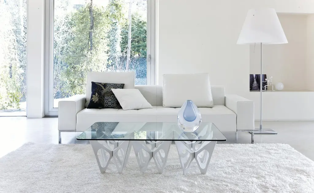 Zanotta Large Butterfly Table In Glass Top With Natural Oak By Alexander Taylor