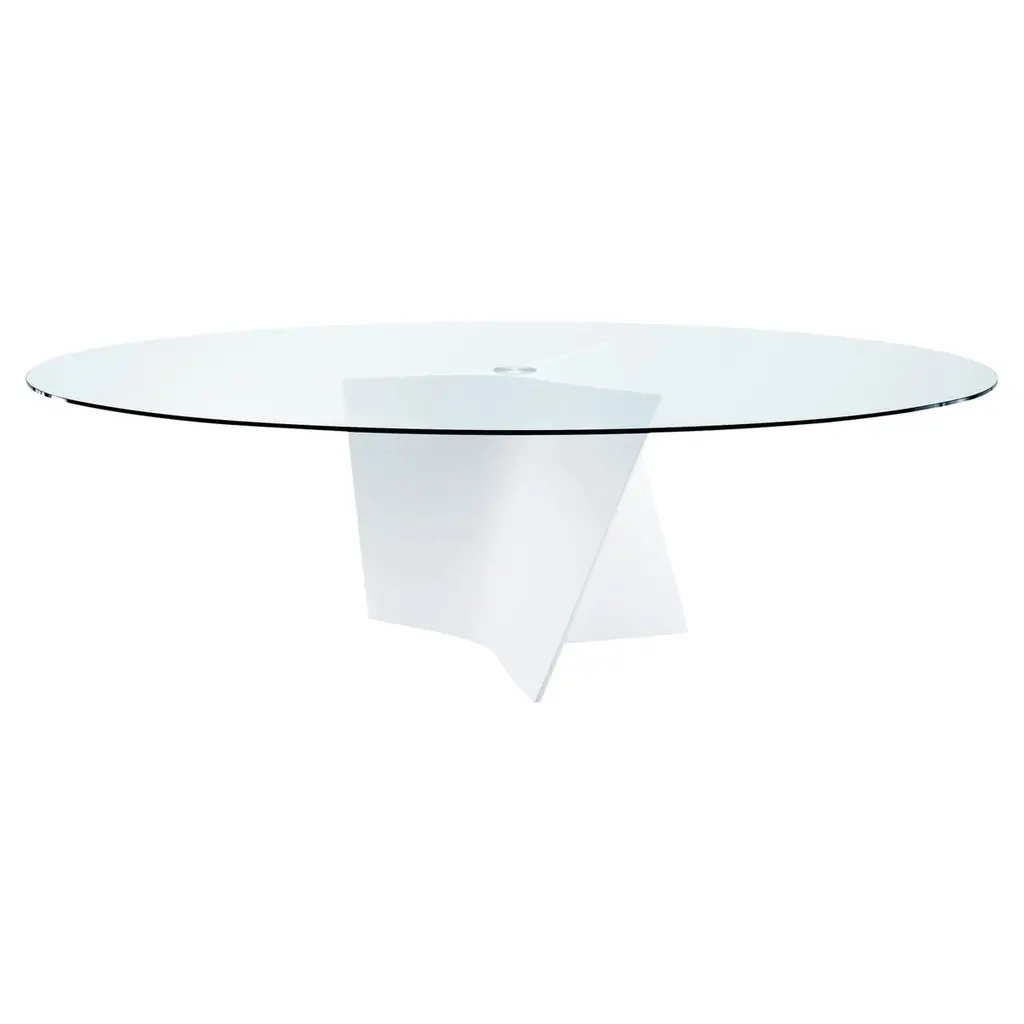 Zanotta Large Elica Table in Clear Glass Top with Black Frame by Prospero RasuloBase in Cristalplant®, composite material based on polyester and acrylic resins, loaded with minerals and mass pigmented in the shade of matt white, or black glossy lacquered. 1/2” thick plate glass top, clear or smoky grey, only matching the black base.Additional Information:Material: Polyester and acrylic resinsTop finish: Clear glassFrame finish: BlackDimension: ø 158 x 72.5 H cmAvailable in other size options: ø 138, 128x198, 138x238Available in other top finish option: Smoky glassAvailable in other frame finish option: White