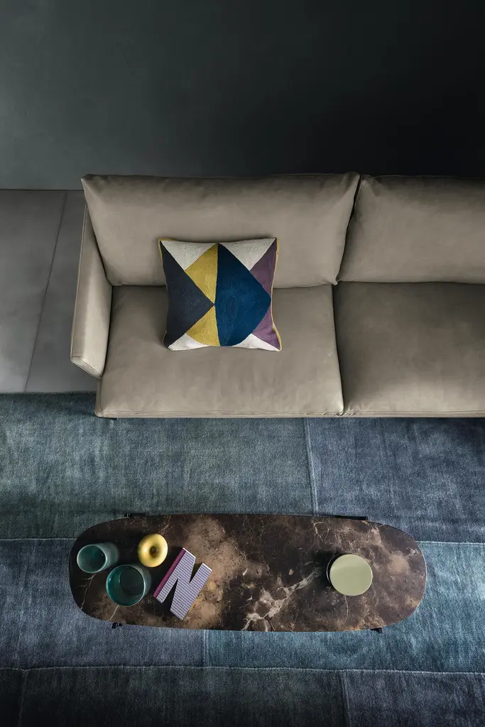 Zanotta Large Niobe Table In Emperador Marble Top With Black Steel Frame