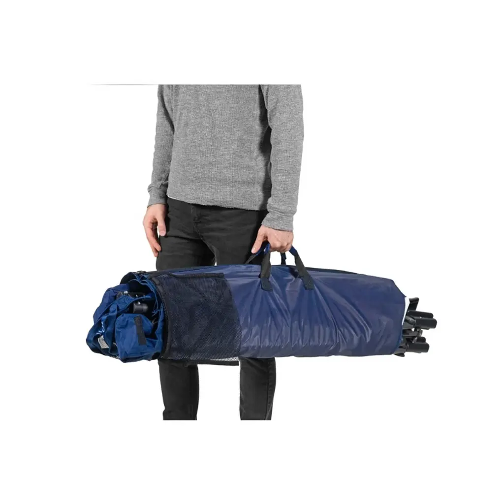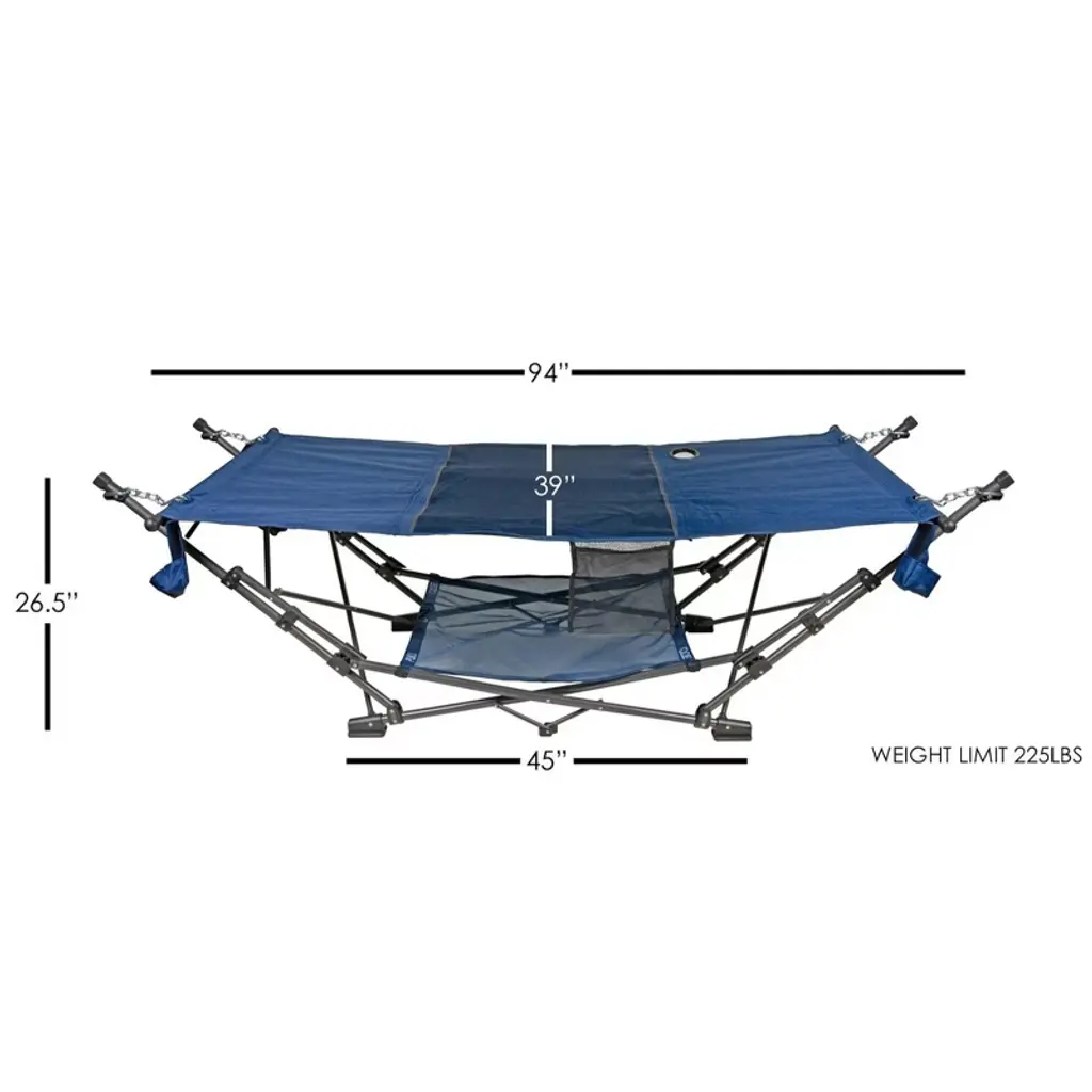 Polyester fabric is easy to clean and will last through many seasons under the sun and rain With a compact size for easy carry, the folding hammock offers a restful retreat for reading, napping or just lounging. The strong but lightweight steel frame makes setup and takedown fast and easy. It's the perfect hammock to use outdoors if you like to sleep under the stars or bask in the sun. It's also great to take camping to use in your tent, providing you with off-the-ground comfort.