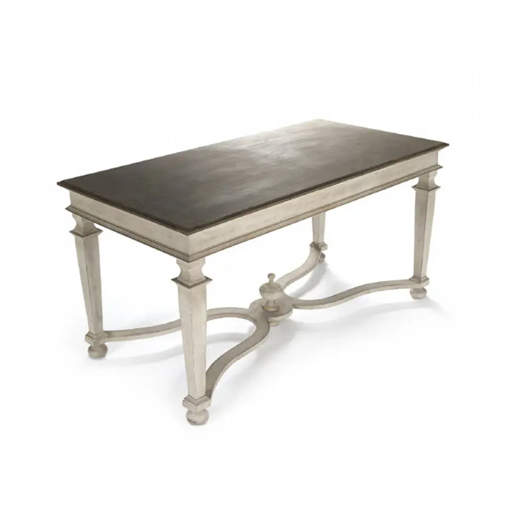 Zentique Tiffany Table Distressed Brown Top, Distressed Off White Base