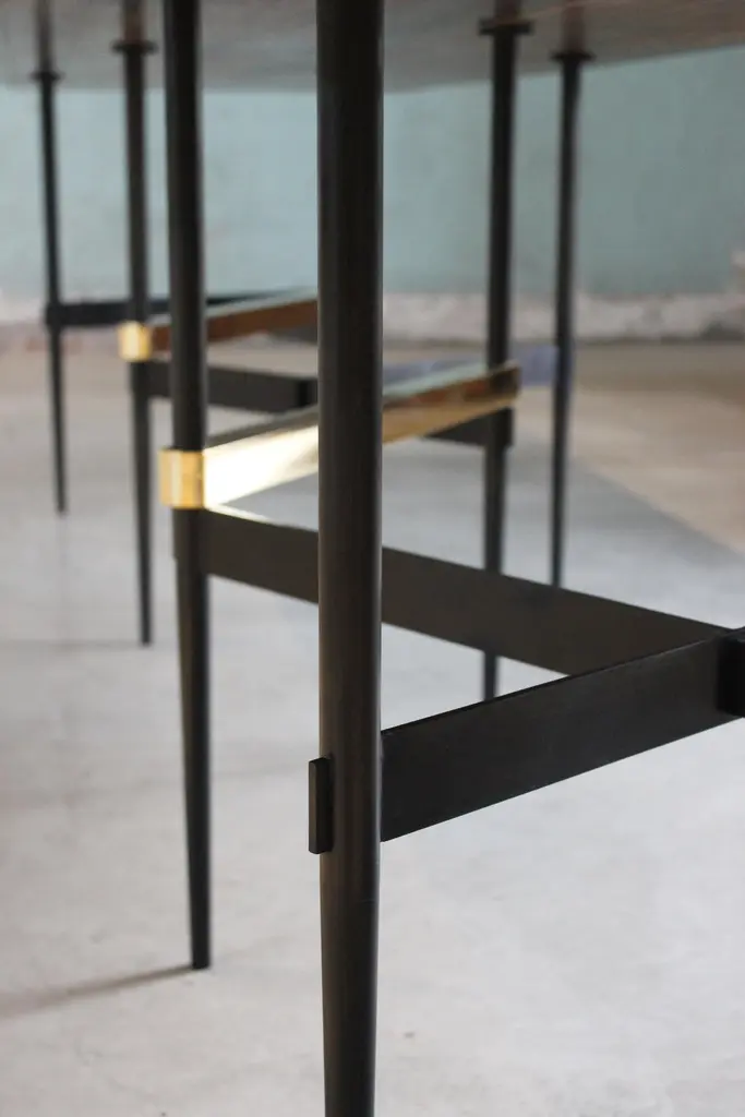 Zig Zag table in walnut and brass by Atra.Designer- Alexander Diaz Anderson Size:RegularL 280.0cm/110.2”W 110.0cm/43.3”H 73.6cm/28.9"LargeL 339.8cm/133.8”W 110.0cm/43.3”H 73.6cm/28.9"Wood Finish Options - WalnutWhite Oiled OakMexican OakBeechMahoganyTeak (Outdoor) All our items are customizable to your preferred finish.Upon order you will have your item within 20 weeks!