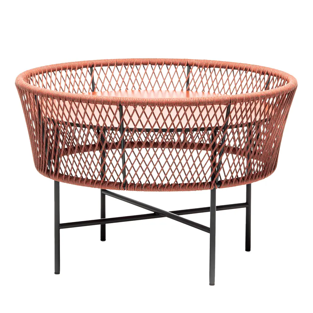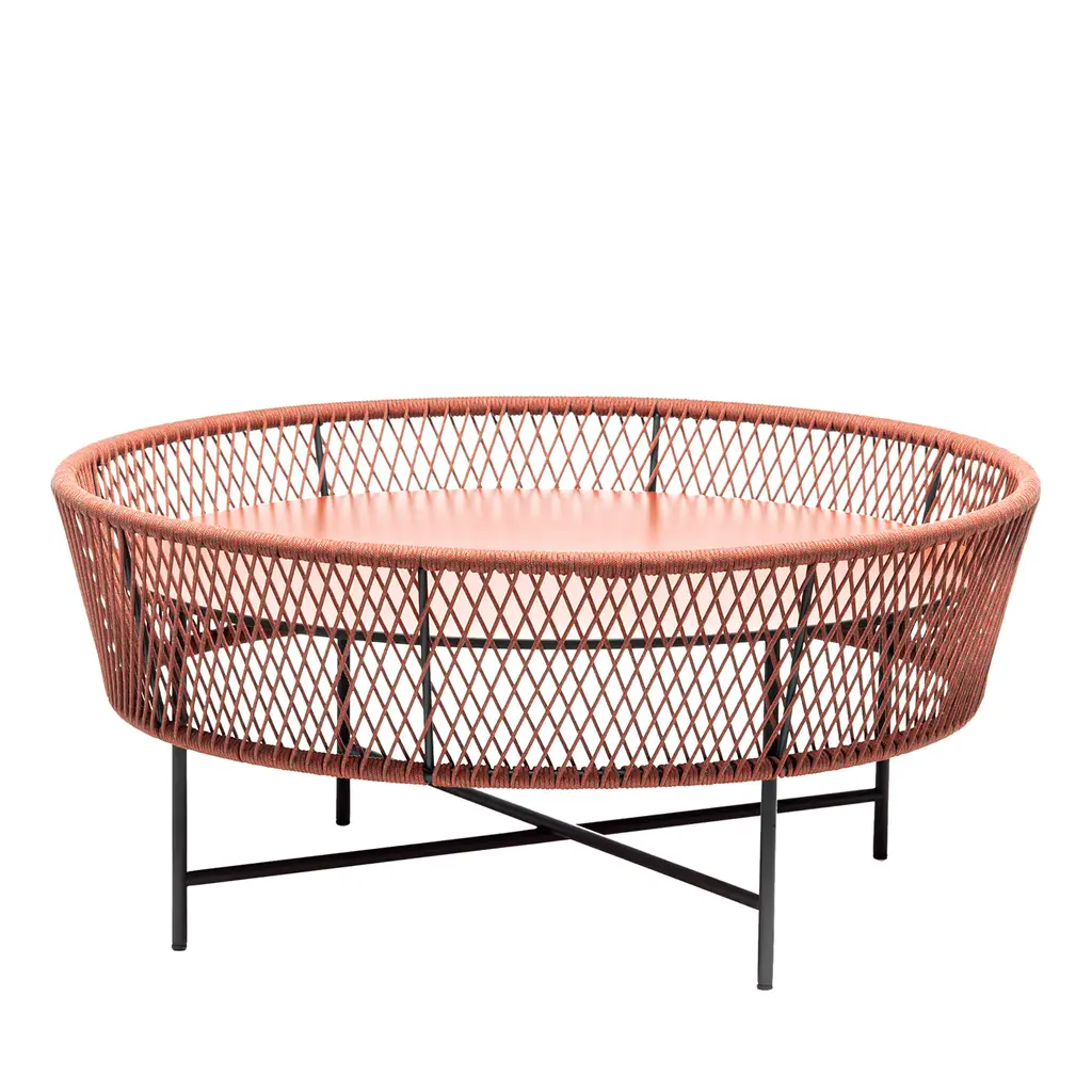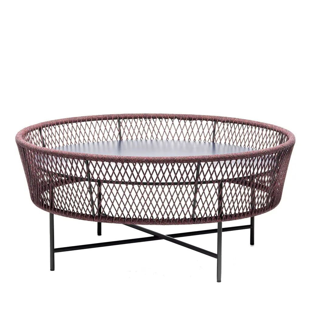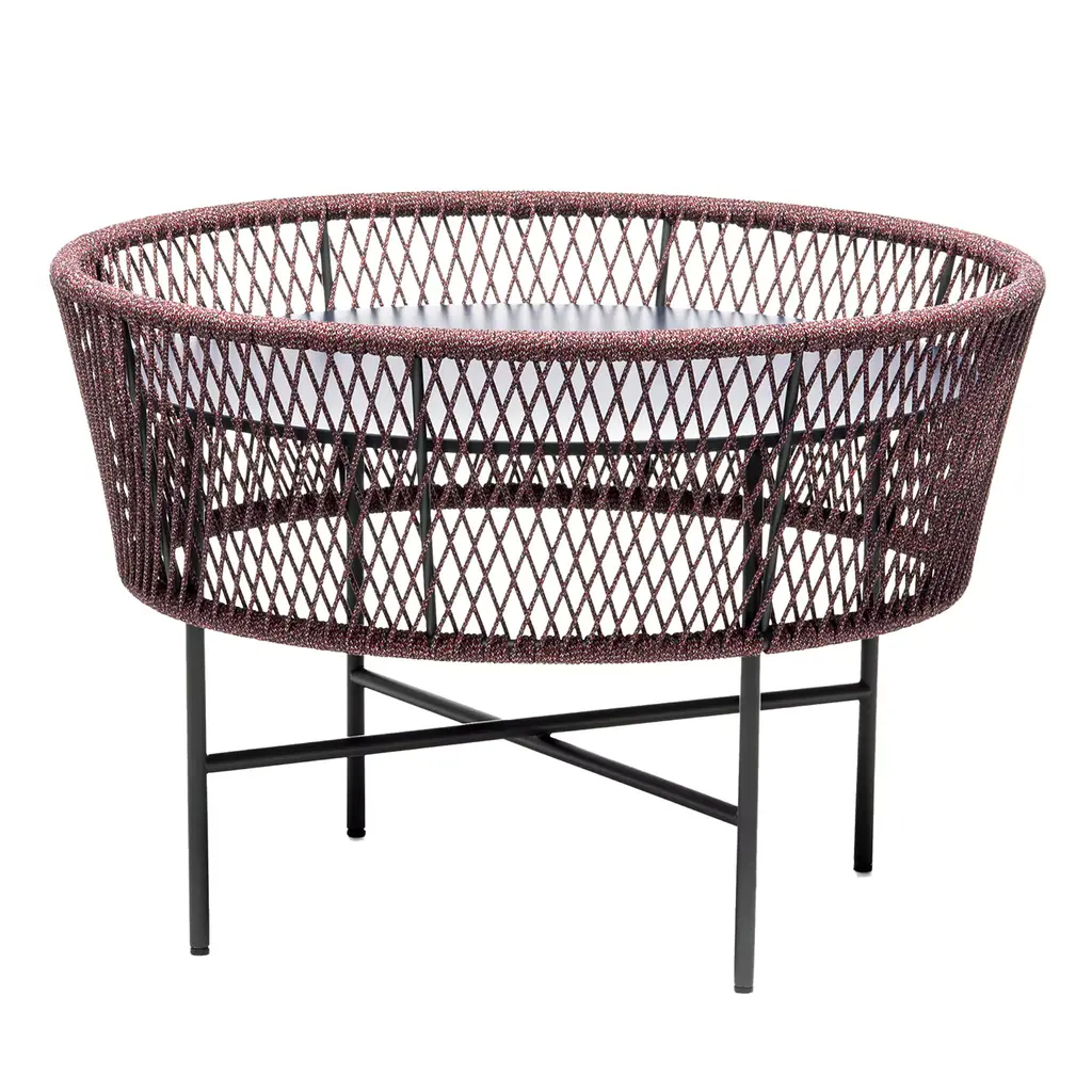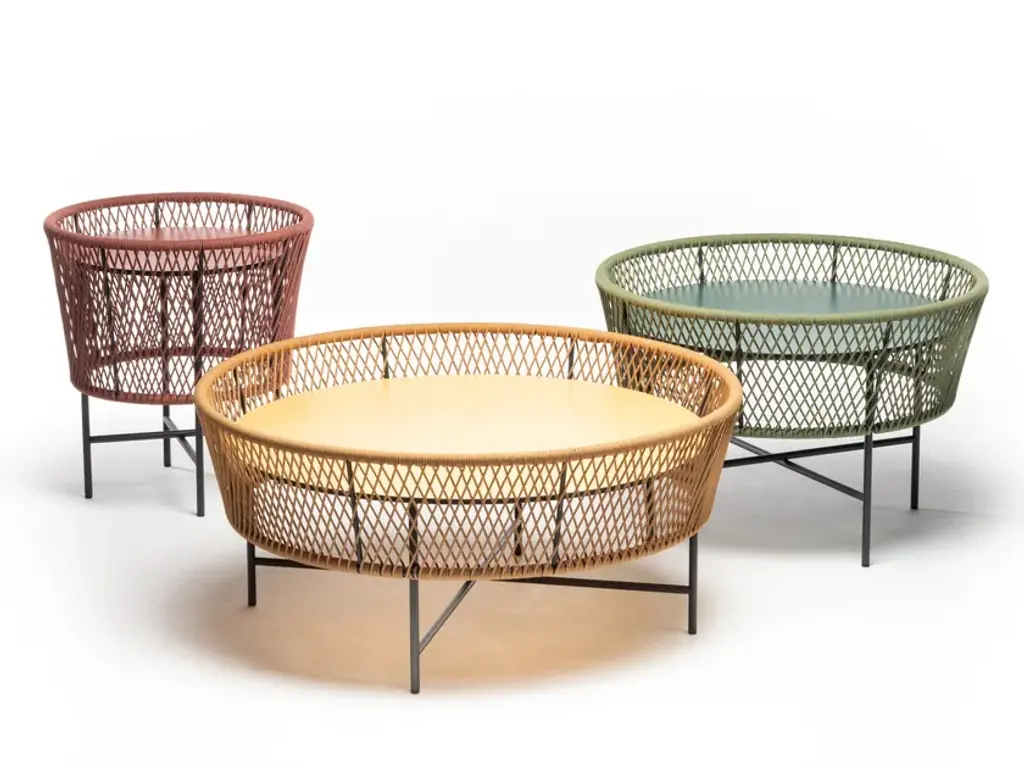 Metal, wood, rope: simple materials which reinvent commonly used objects. A collection of poufs and coffee tables made in metal rods and woven nautical cords, mixed together like the paints on an artist’s palette. The reference to David Bowie’s iconic Ziggy Stardust is no accident and relates to the irony in the idea of revolutionising the type of accessory furniture in the area for relaxing. The barrel and hourglass silhouettes come together to make up islands which expand: interweaving and volumes are enhanced in the coordination of the mixed colours of the cord, pointing to a new idea of furnishing accessory with endless possibilities of personalising the space. The two-tone plaited rope is an exclusive Saba combination.Architect, designer, artist. Emilio Nanni has a degree in Architecture from the University of Florence. He has worked as a lecturer and researcher at the same faculty, and held lessons and workshops at several Italian university faculties and design schools. He is the founder of the Emilio Nanni arch+design ENa+d studio, which handles projects in the fields of architecture, design, interior design, art direction and design consultancy. As an architect he has designed and built residential buildings of various sizes in several Italian cities. He has worked as a designer for many Italian firms, including Billiani/Novecentoundici, Bross, Cabas, Calligaris, LaboratorioPesaro, Lamm, Mdf Italia, Guzzini, Roche Bobois, Saba, Tonelli, Tonon, Valadier Gioielli, Zanotta and Zeritalia. He has participated in many exhibitions and shows in the sector and his work has been featured in articles and critical essays in the leading Italian and international architectural periodicals, magazines, blogs and websites. He is also a painter, who has displayed his work in several solo exhibitions in galleries and museums in Italy and abroad, and his work is featured in various public and private international collections.Additional information:Material: Metal, wood, ropeFrame: Glossy redTop: Opaque redRope finish: Melange orangeDimensions: Ø 44 x 40 H cmAvailable in other frame finish options: Glossy gray, glossy blueAvailable in other top finish options: Opaque gray, opaque blueAvailable in other rope finish options: Melange hemp, melange white - black, melange blueAvailable in other sturctural options