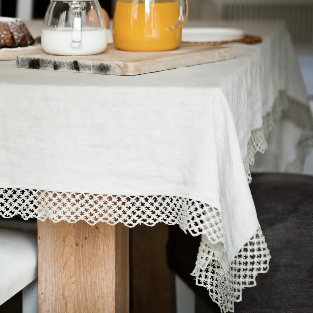 Linen Set Of Tablecloth And Napkins With Macramè