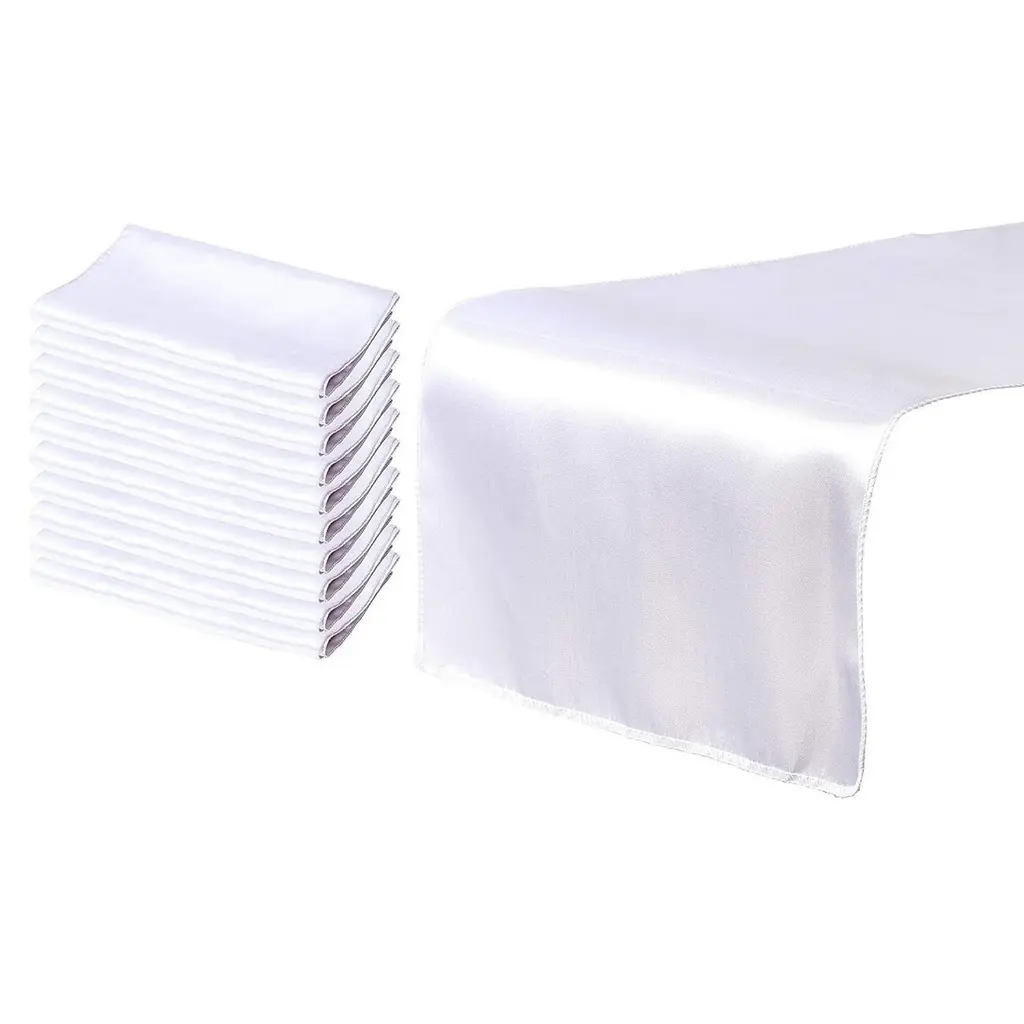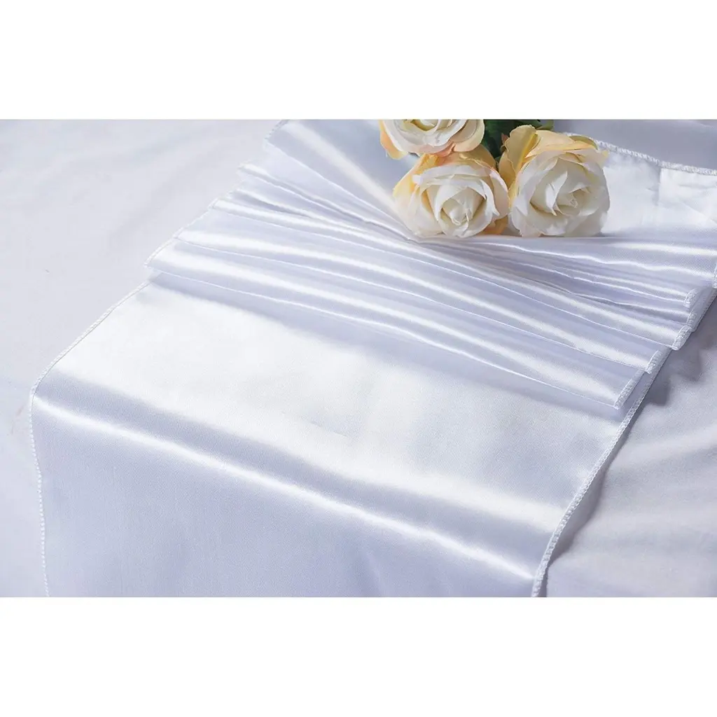 10-Pack Satin White Table Runners - Tablecloth For Wedding Decorations, 108.2" - White