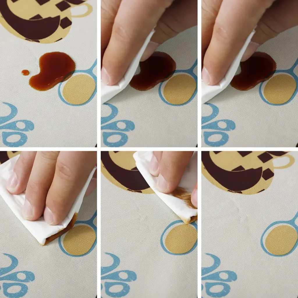 Ray Star PEVA tablecloth is made with high-quality PEVA material that ensures long-lasting usage and is lined on the bottom with soft flannel backing to protect the table surface. It is 100% waterproof, stain-proof, and easy to clean and install. Offering two sizes of rectangle and round, this PEVA tablecloth is the perfect addition to elevate the look of any space.Bring a cozy and whimsical vibe to your dining table with this charming tablecloth featuring a delightful tea-party-inspired design. Adorned with an array of vintage teapots, cups, saucers, and sweet treats, this tablecloth adds a playful yet elegant touch to any meal setting. The warm tones of red, blue, beige, and cream complement a variety of home decor styles, from rustic to modern. Features:• Joyful and stylish patterns elevate the look of your dining tablescape • Flannel backing can improve slip resistance and softly protect the table surface• Water-proof, oil-resistant, and easy to clean• Material: PEVA• Weight: 0.67 lb, 0.53 lb• Dimensions: