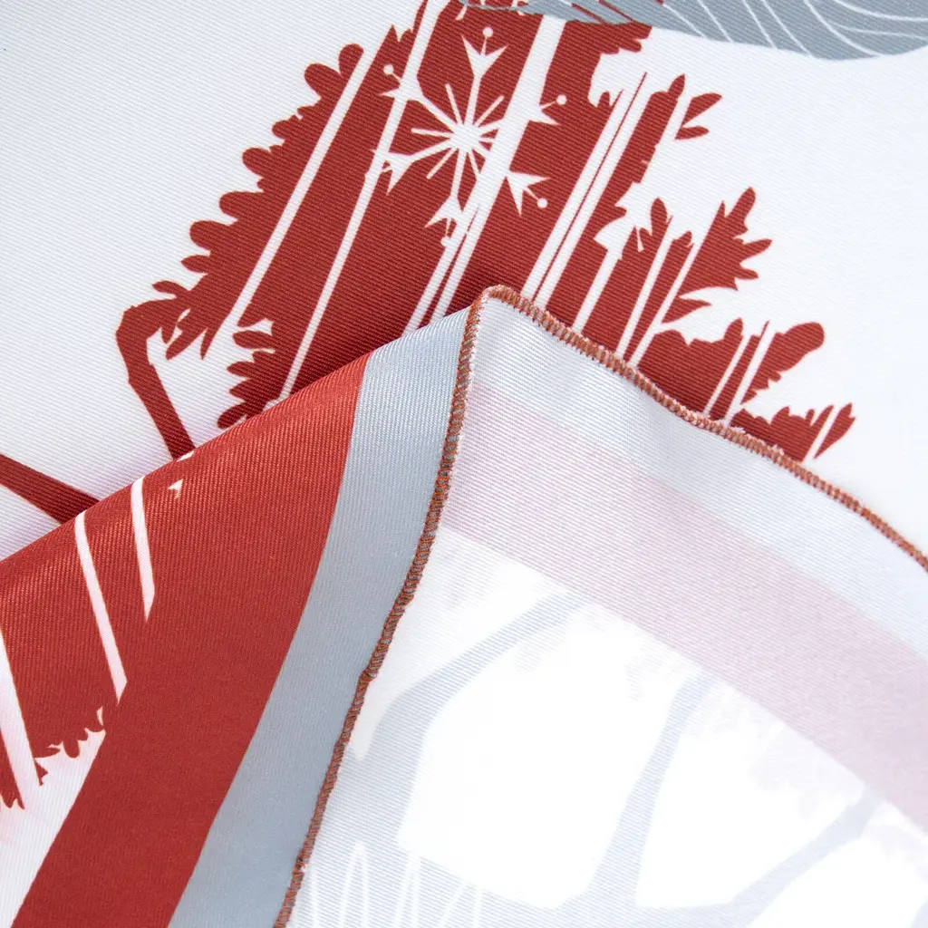 2025 Polyester Christmas Elk Red And White Elements Celebrate Tableclothgreatflannel - 60"
