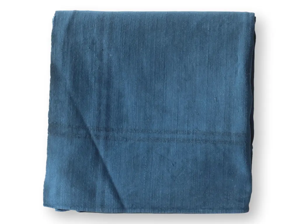 This antique French linen tablecloth boasts a stunning indigo hue, showcasing the quality and craftsmanship characteristic of traditional French linens. Its natural fibers offer durability and elegance, making it ideal for both casual dining or a special occasion. The generous size accommodates large dining tables and can be repurposed as a bed cover or drape. A timeless piece that adds an understated charm to any space. Easily hemmed to fit smaller table.