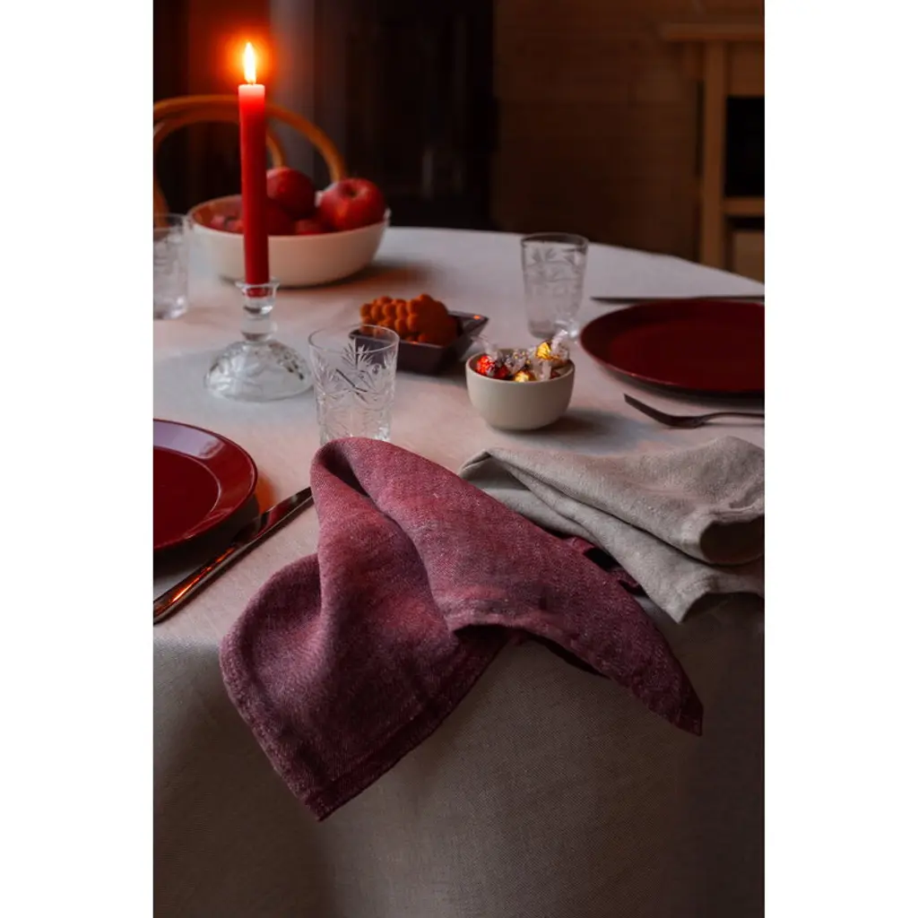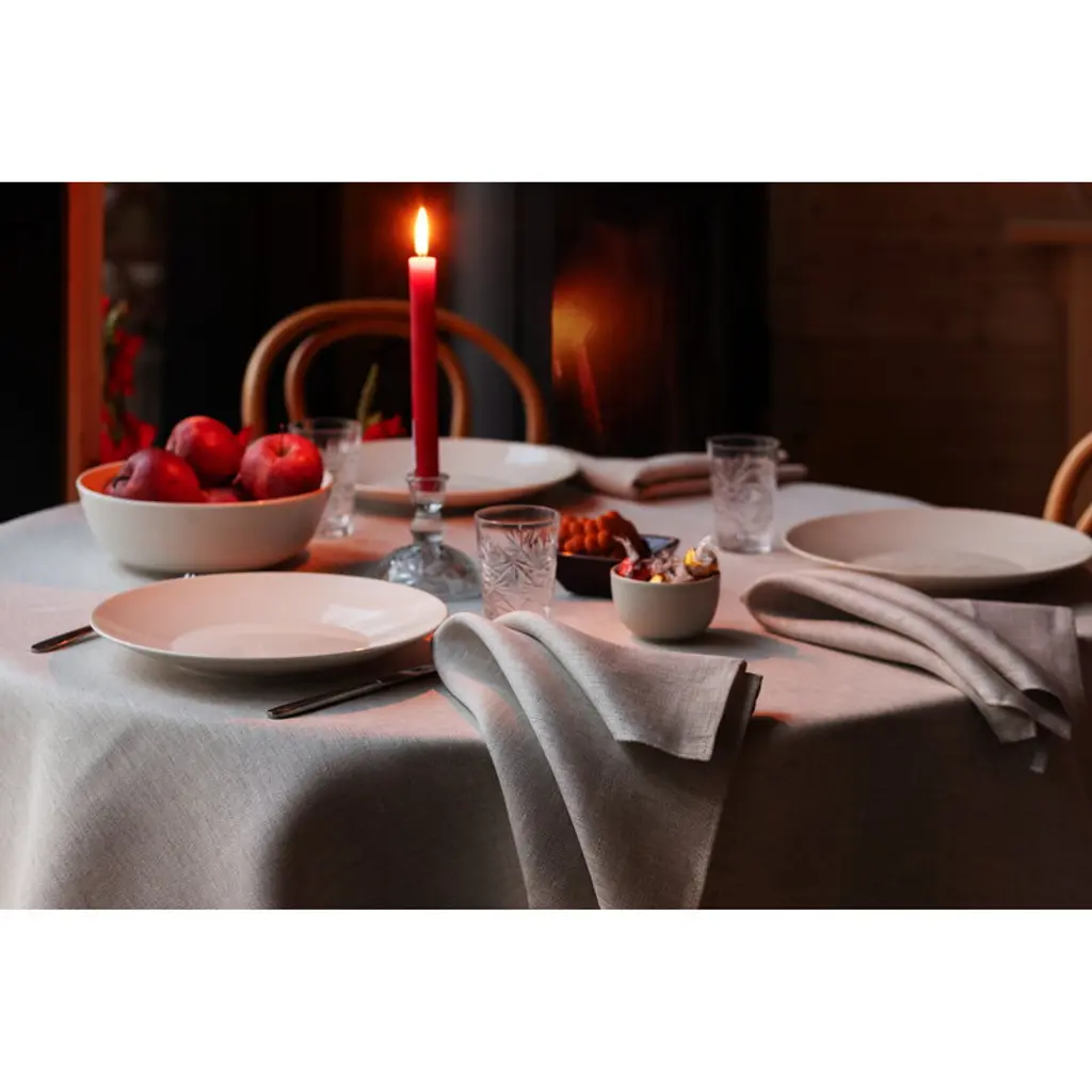 The Aamu tablecloth by Lapuan Kankurit elevates any table setting with linen's natural feel, tactile texture and vivid colors. Suited for both formal and more casual table settings, the elegant linen tablecloth is made of European linen and finished with sewn edges and a Lapuan Kankurit logo. The Aamu tablecloth is woven at the Lapuan Kankurit weaving mill in Finland.