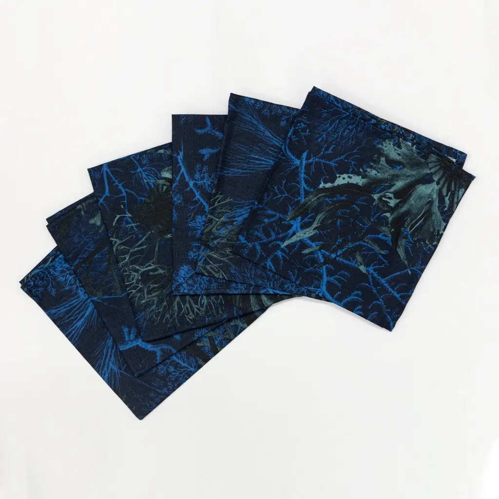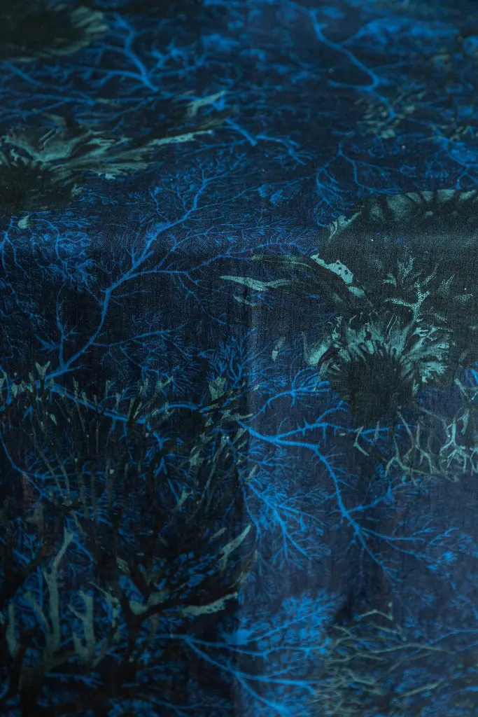 This linen tablecloth, inspired by the Amami islands, off the coast of Japan, is a tribute to the coral reefs and the splendid flora that compose them, now increasingly at risk of extinction. The intense ultramarine blue will give a touch of elegance and uniqueness to your table.1 250x150cm tablecloths + 6 45x45 napkins.