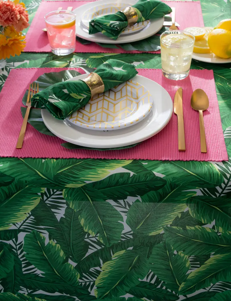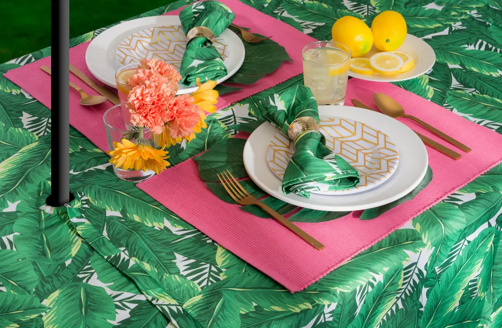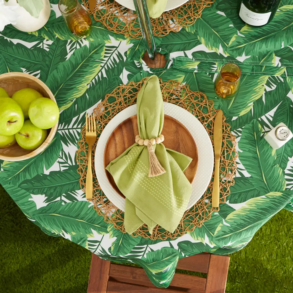 Infuse your outdoor space with tropical charm with the Banana Leaf Outdoor Tablecloth with Zipper. Featuring a vibrant and bold banana leaf print in lush green hues, this tablecloth brings a refreshing, nature-inspired touch to your patio, garden, or dining area. The convenient zipper design ensures easy fitting around umbrella poles, making it a perfect choice for outdoor gatherings. Crafted from durable, weather-resistant fabric, it offers both style and functionality, protecting your table while adding an exotic flair to your next outdoor celebration.