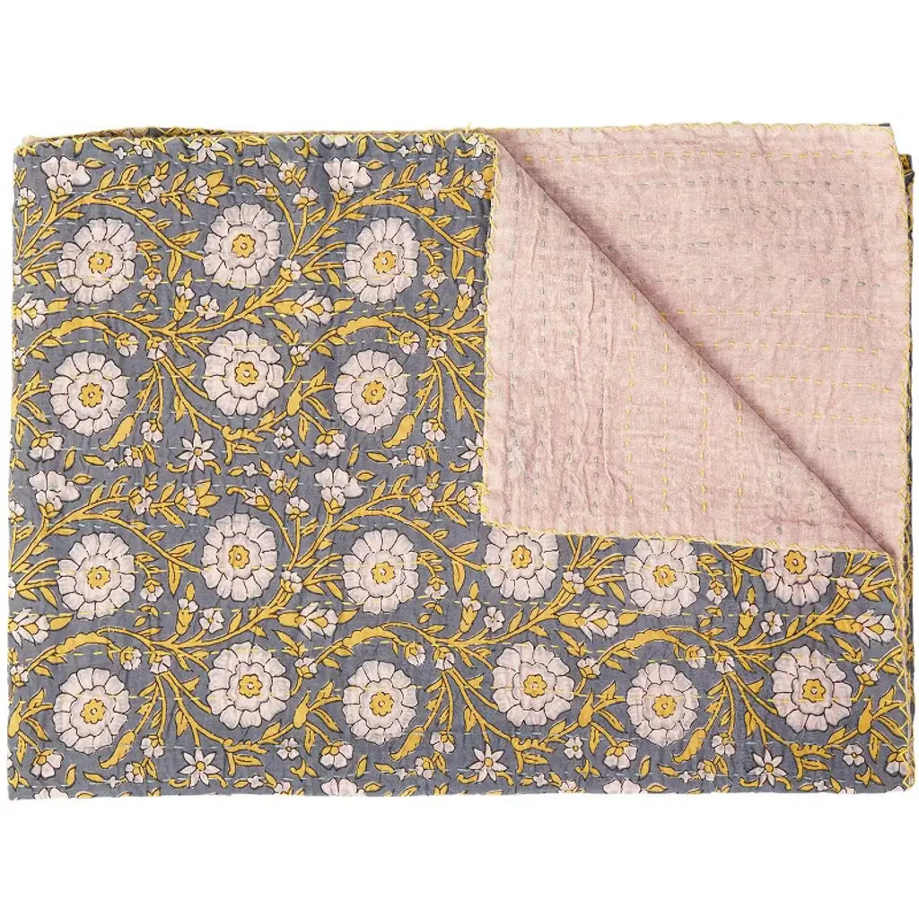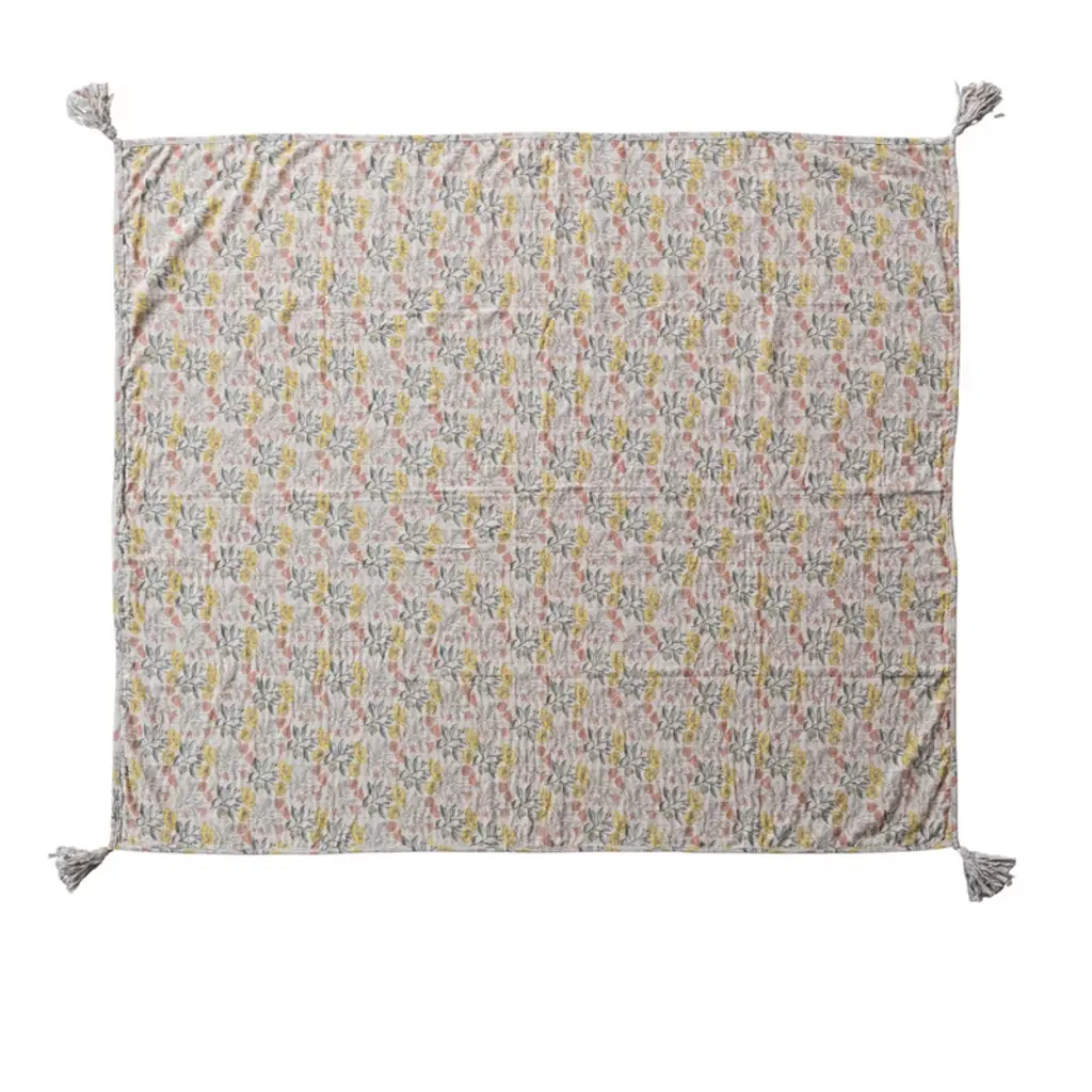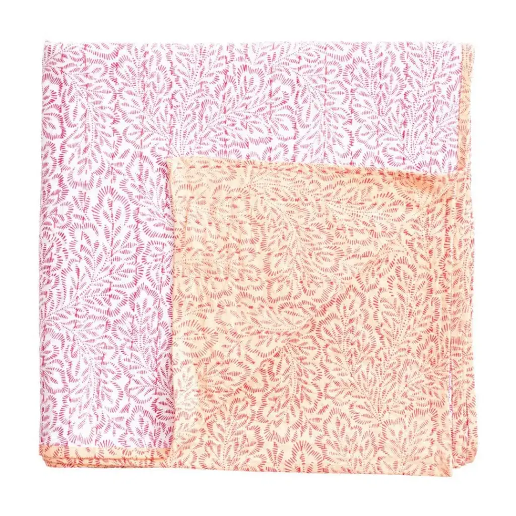 Block Print Leaves Fuchsia Reversible Cotton Tablecloth 70.5 X 70.5 Inch
