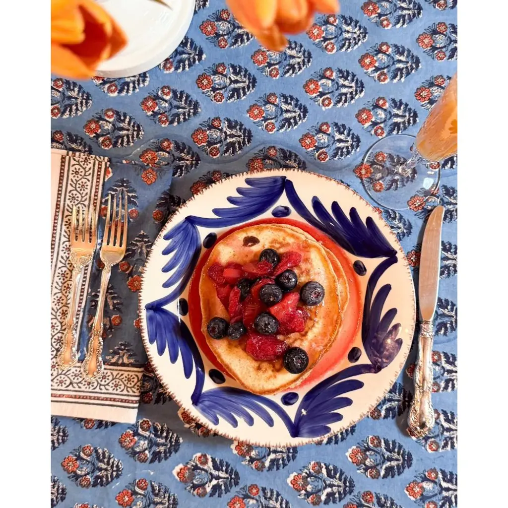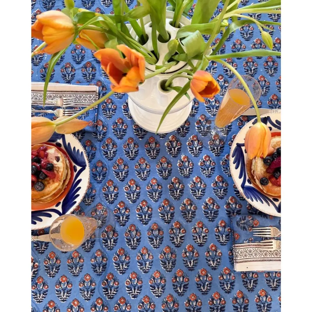 Jubilant hand-block prints add color and chicness to any occasion, whether indoors or al fresco dining. Be sure to look at the complimenting napkins (#523019) to complete your setting!