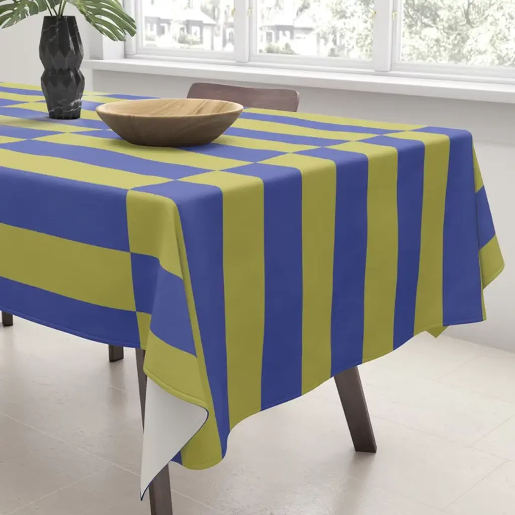 Bold Striped Pattern With Electric Cobalt And Chartreuse Colors Tablecloth