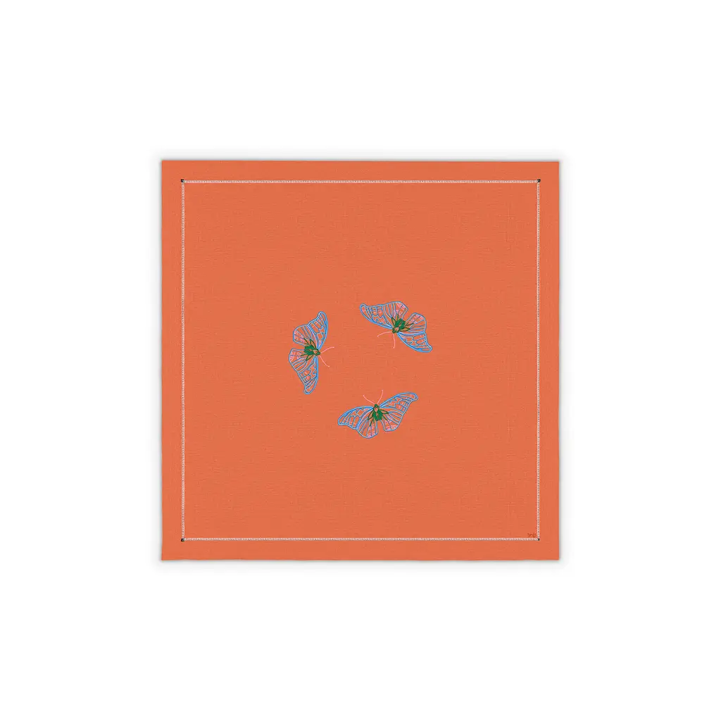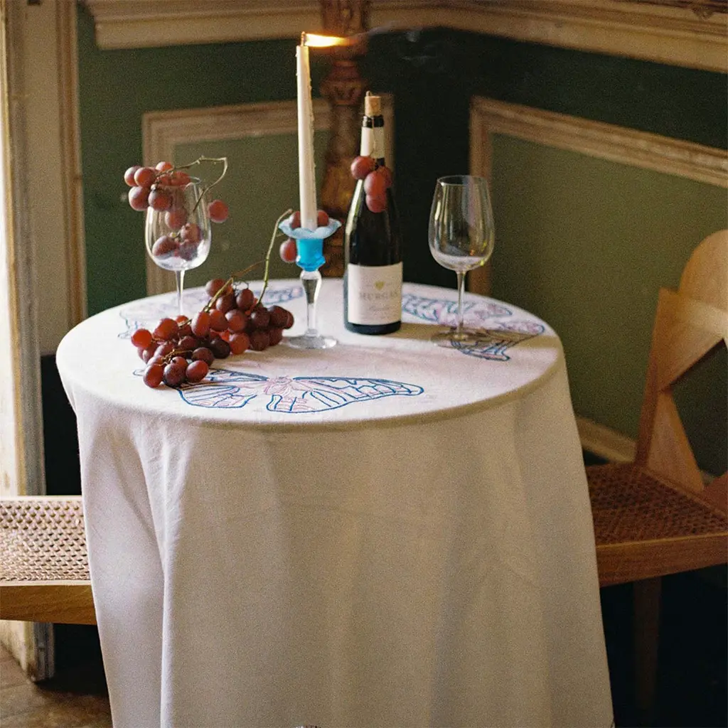 Hand-embroidered with open hems, our linen tablecloths provide the perfect backdrop for anysetting. With each motif taking fourteen hours to complete, and each meter of open hem two hours toprepare, the artistry behind each design is significant. Style with contrasting-coloured ceramics anddelicate floral arrangements for a chic, maximalist aesthetic.The magnificent forms and colours of butterflies have inspired artists for generations, with this collection reigniting our appreciation for their natural beauty. Through delicate needlework and soft hues, the magic of these dazzling creatures brings any table to life.