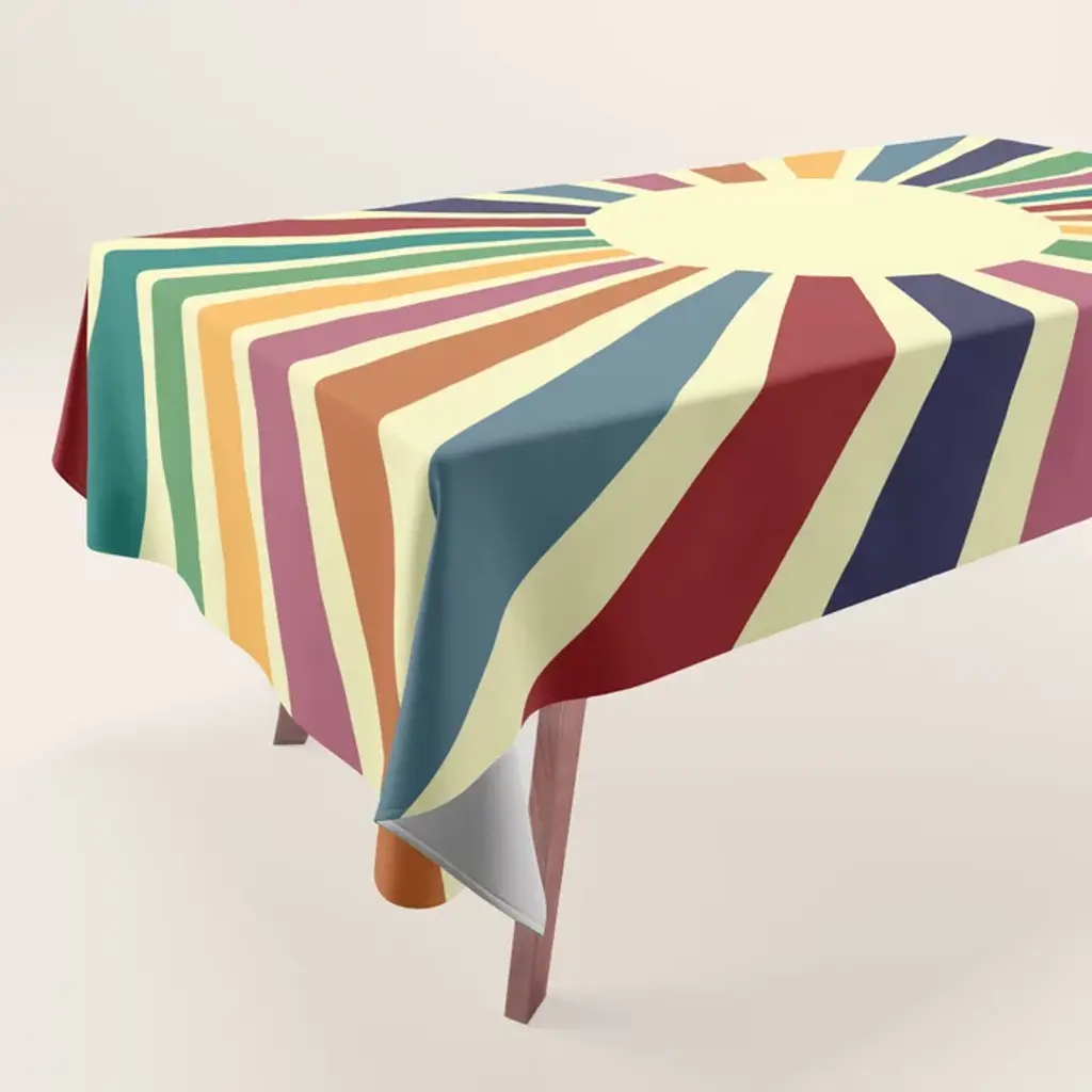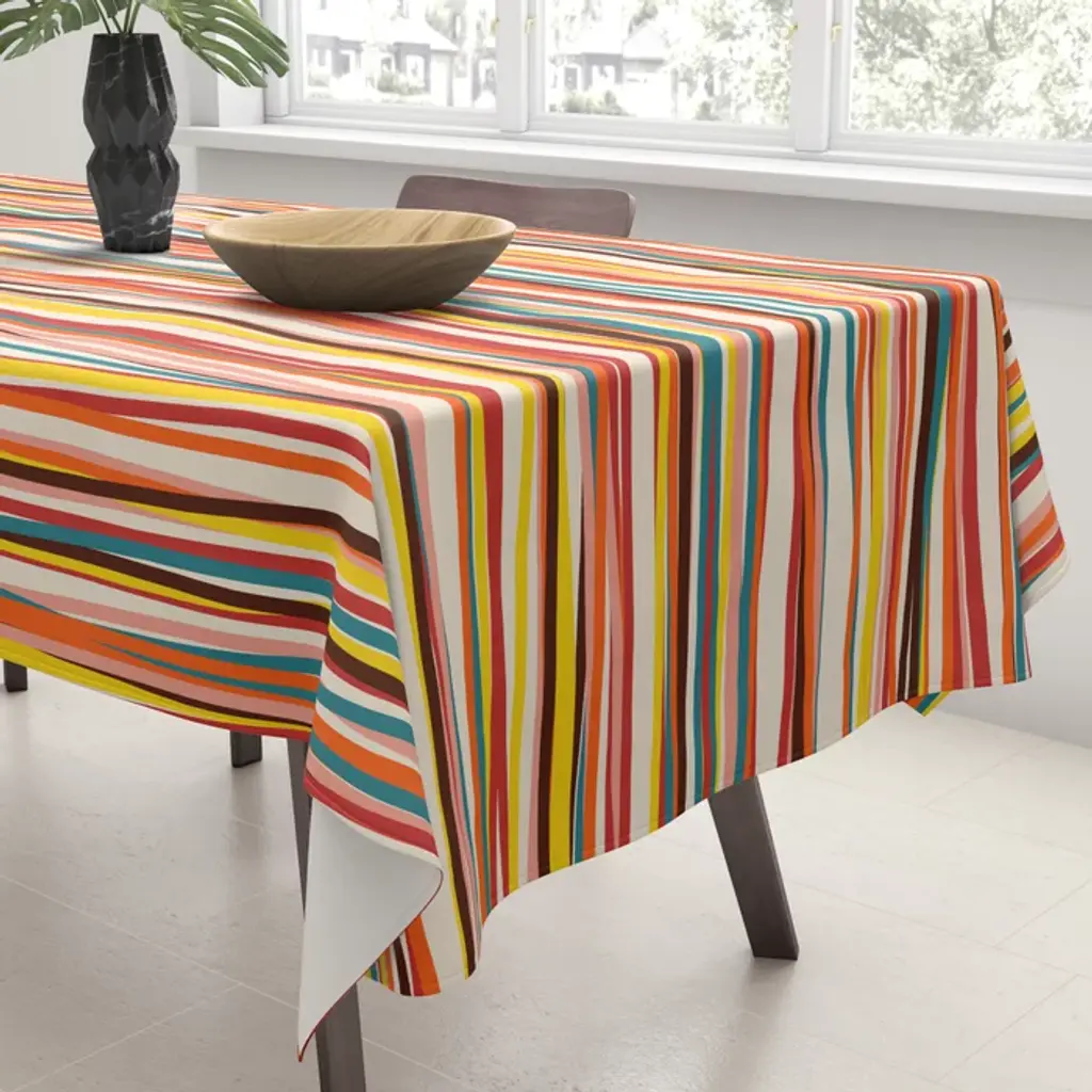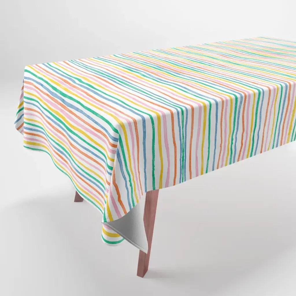 Bright Colorful Lines - Classic Abstract Minimal Retro Summer Style Stripes Tablecloth