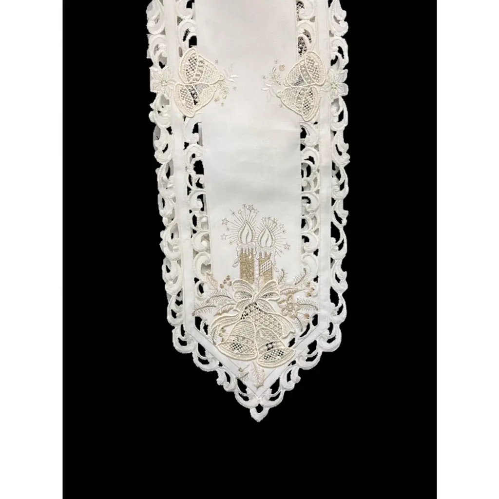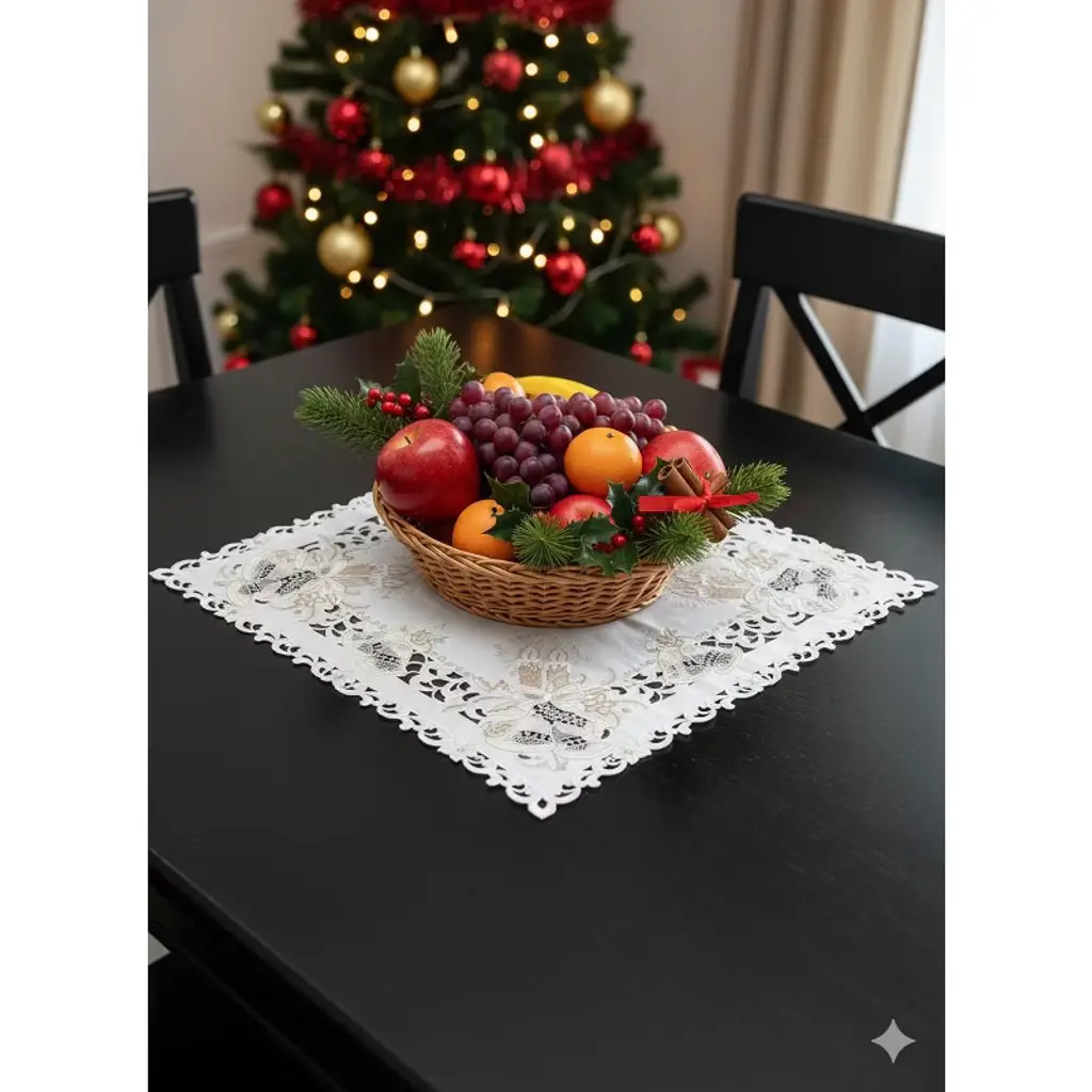 Christmas Candle Beige Lace Embroidered Cutwork Square Tablecloth, 36 Inch Square