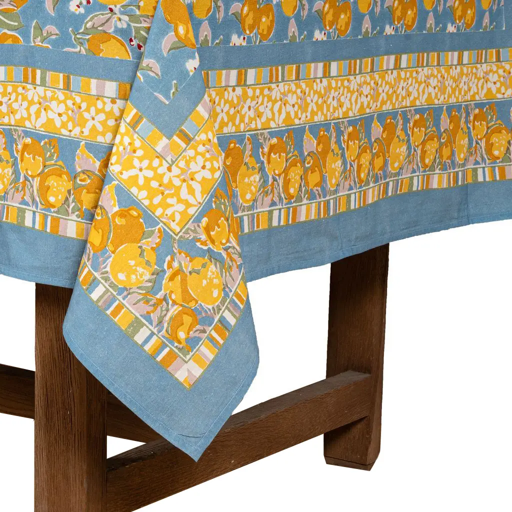 Bring the essence of vibrant citrus orchards to your dining room with the Citron tablecloth. Handcrafted from a luxurious blend of linen and cotton, this tablecloth exudes French elegance and charm, featuring a delightful citrus design inspired by zesty lemons and blooming lemon blossoms. Available in three beautiful colors, it adds a refreshing touch to any kitchen or dining room. Not only does it elevate your table with its vibrant style, but it’s also easy to care for—machine washable for ultimate convenience. Hand-wrapped for a personal touch, this Citron runner combines beauty and practicality, making it the perfect addition to your everyday dining experience or special gatherings.