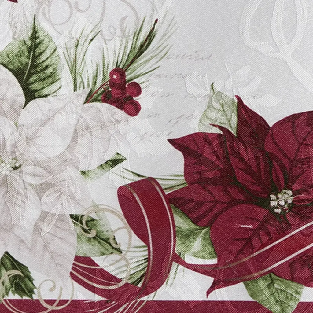 Clarette Poinsettia Holiday Fabric Tablecloth - Multicolor - 60x144 - Elrene Home Fashions