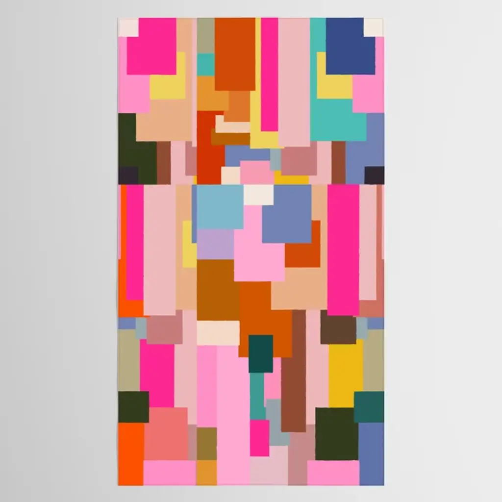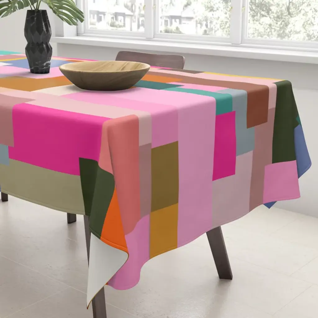 Color Block Print Mid Century Modern Retro Wall Art Geometric Pattern Abstract Tablecloth