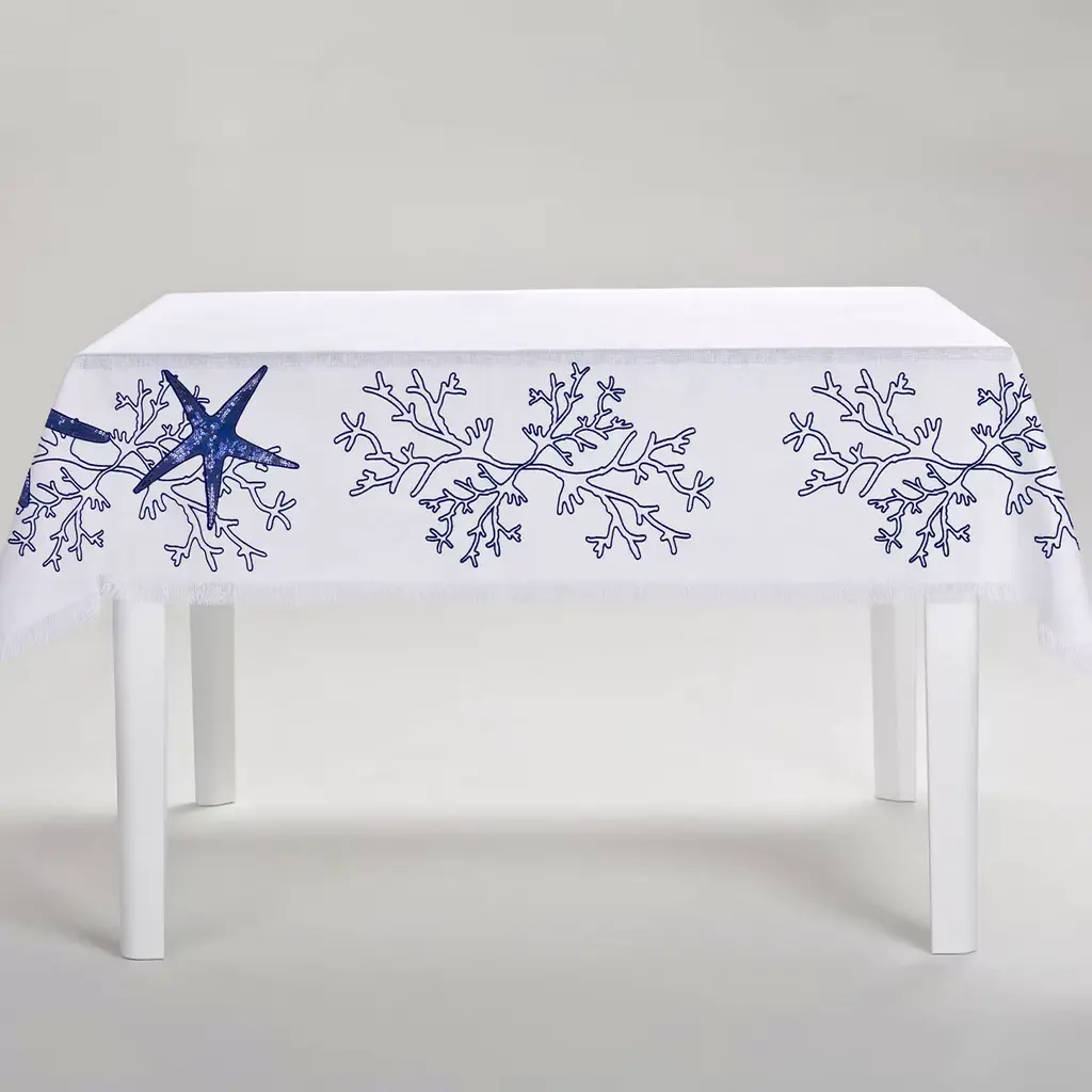 Corallo Blu Rectangular White Tablecoth
