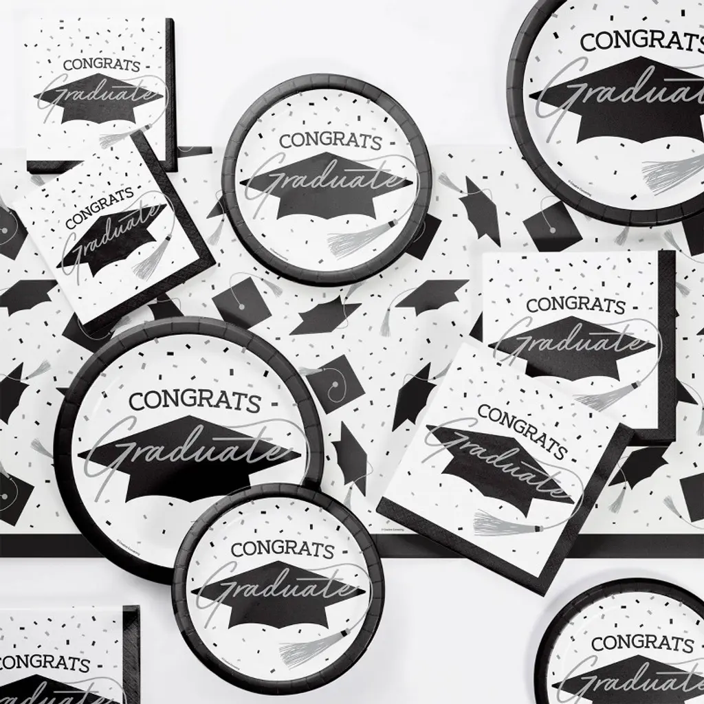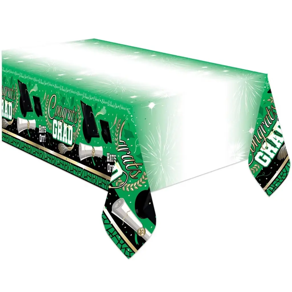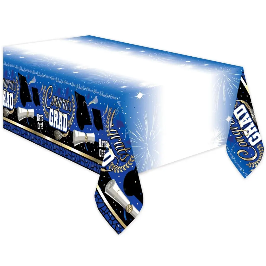 Each Grad Cap Toss Paper Tablecloths Kit includes three paper tablecloths. Create festive tablescapes at your graduation party beginning with the Grad Cap Toss Paper Tablecloths Kit. Measuring 96" x 54", these paper tablecloths fit many rectangular tables and can simply be tossed after the party for easy clean up. The paper tablecloths feature a border pattern of "Congrats Grad" text accented by graduation caps and colorful confetti. Complete the look at your party with the coordinating Grad Cap Toss party supplies. Snag the Grad Cap Toss Paper Tablecloths Kit and start planning your celebration!