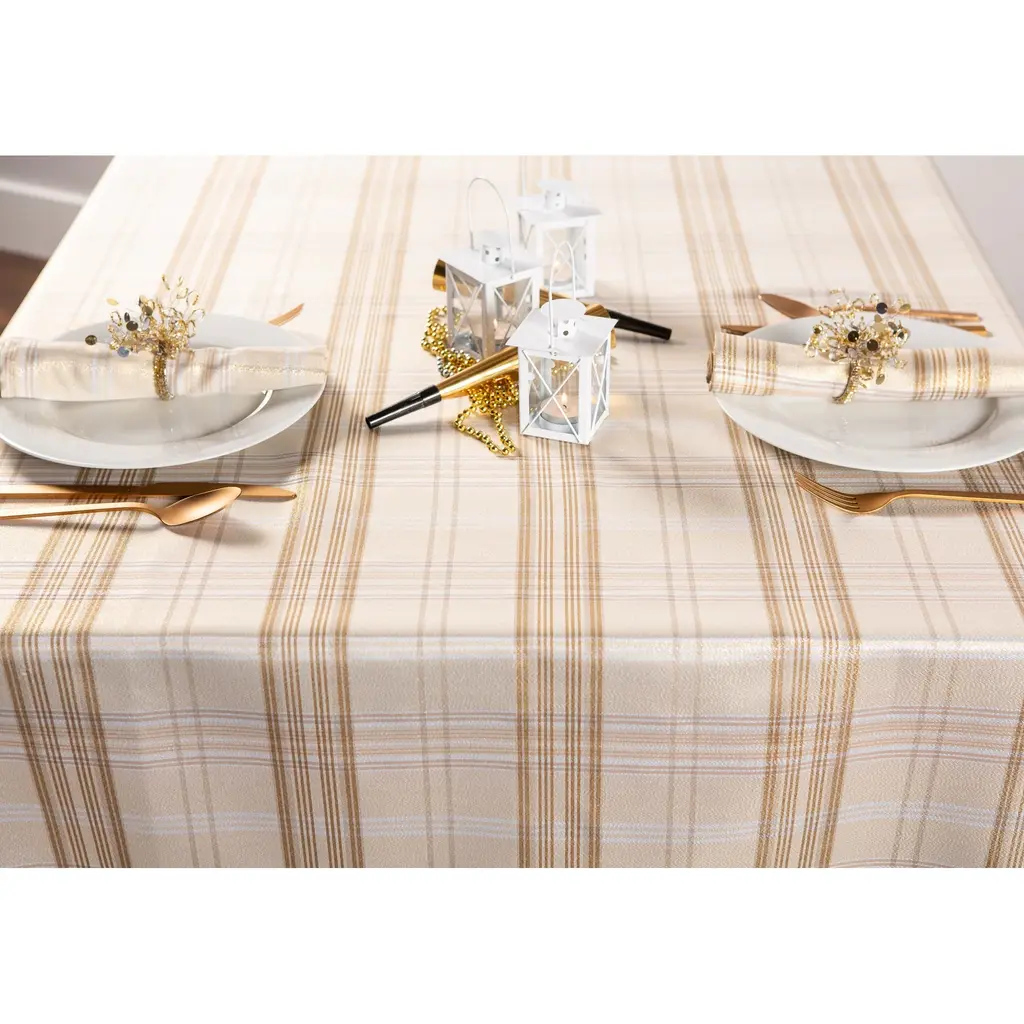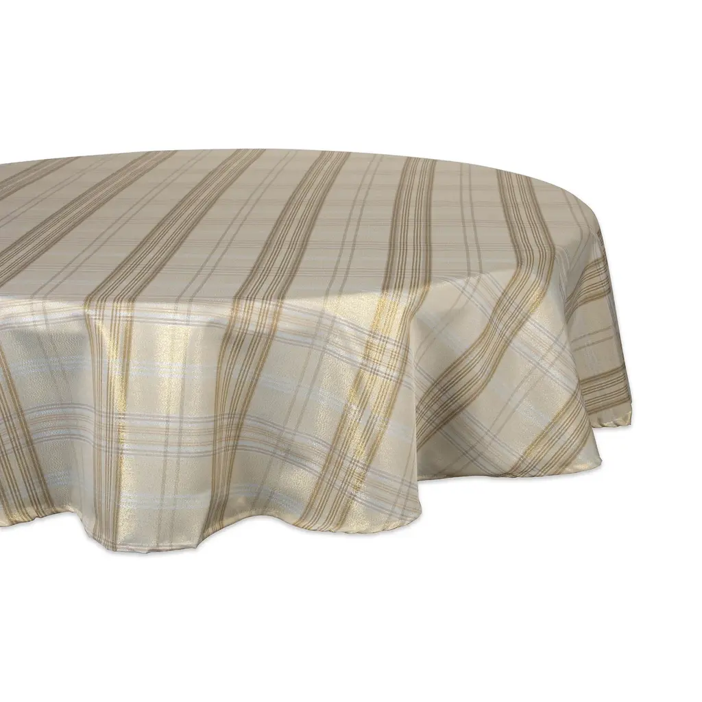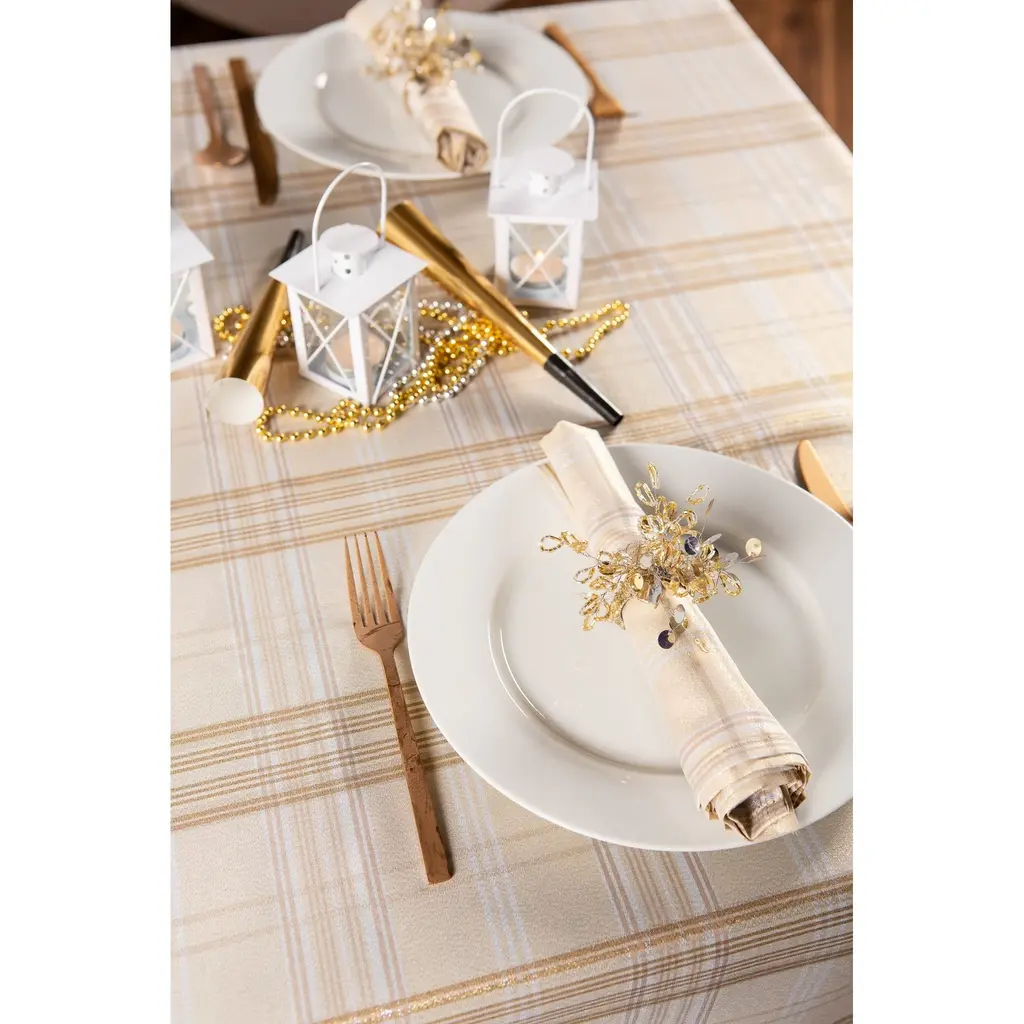 Dii Holiday Plaid Tablecloth - 60x104" - Cream Metallic Plaid - Rectangle