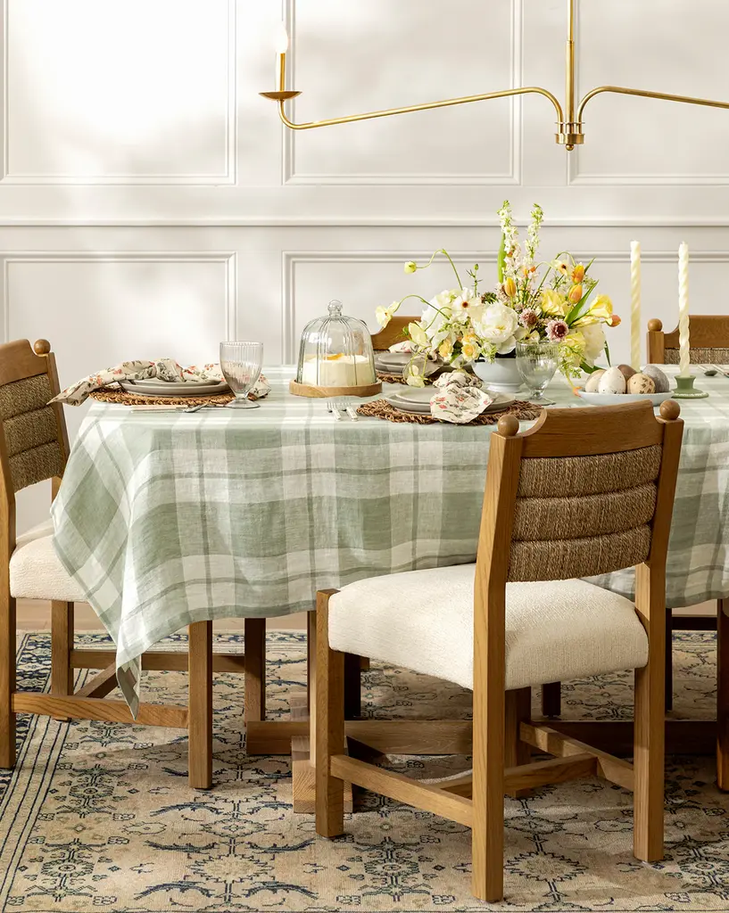 Featuring a checkered pattern in seafoam green and white, our Felix Plaid Tablecloth creates a welcoming atmosphere. Made of 100% linen, the soft and airy tablecloth effortlessly elevates your table settings.