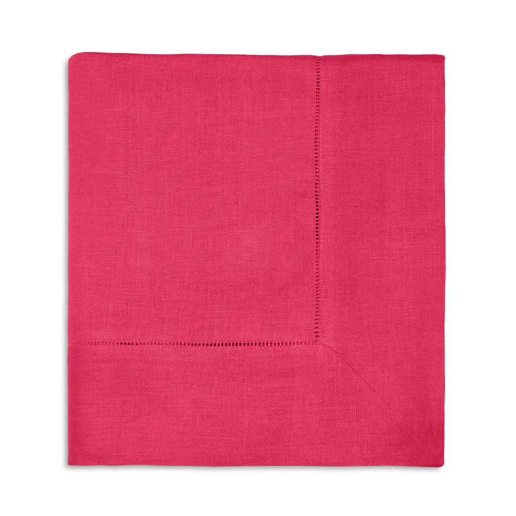 Beautiful linens in bold solid colors, with a row of hemstitching detail for an elegant dining table.