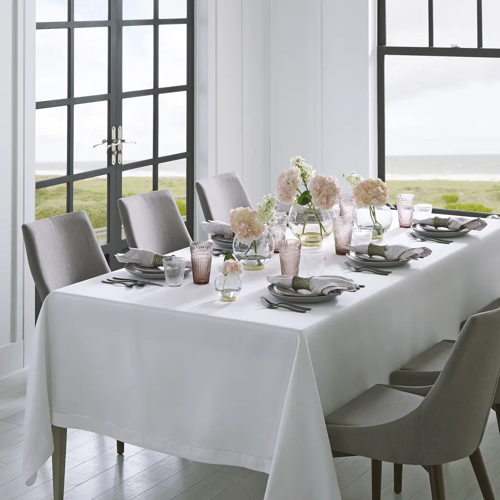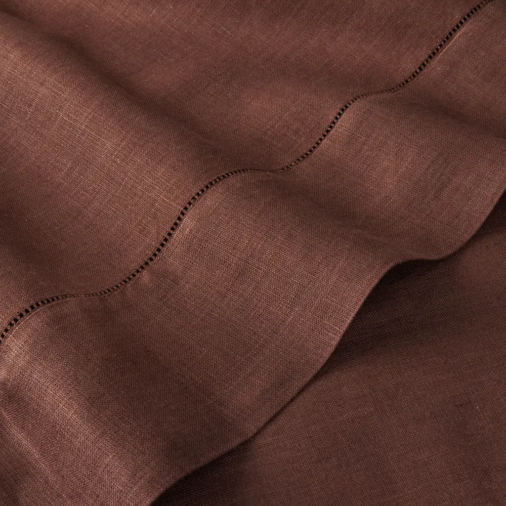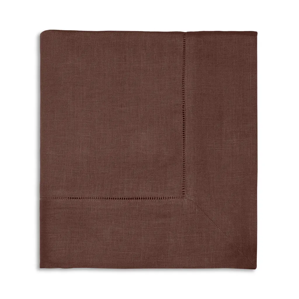Beautiful linens in bold solid colors, with a row of hemstitching detail for an elegant dining table.