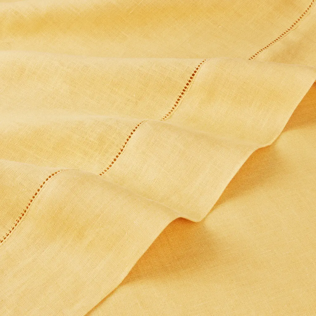 Beautiful linens in bold solid colors, with a row of hemstitching detail for an elegant dining table.