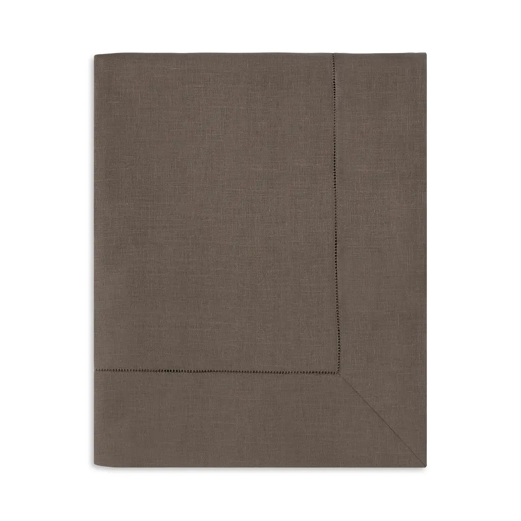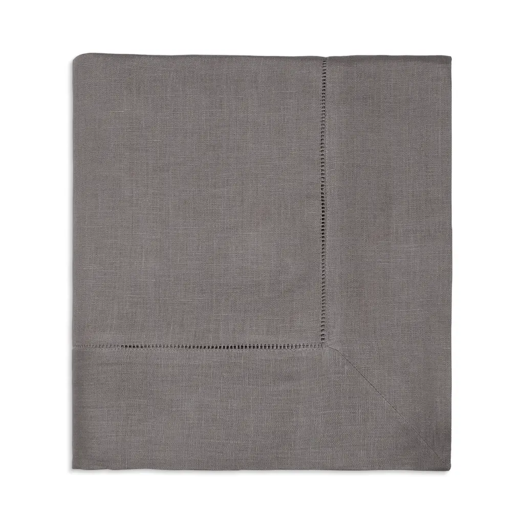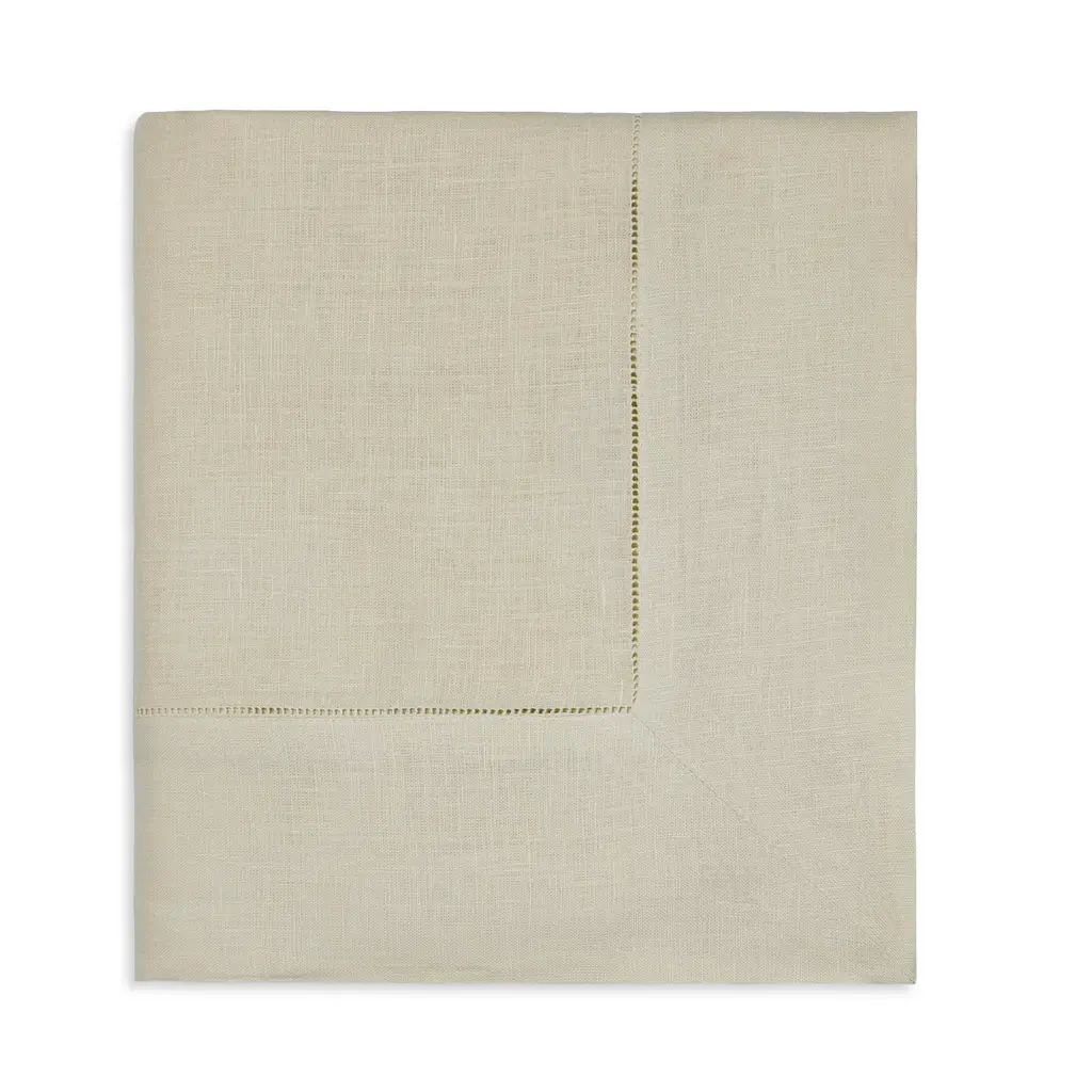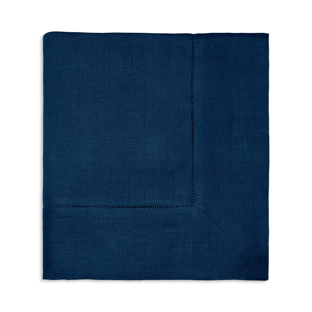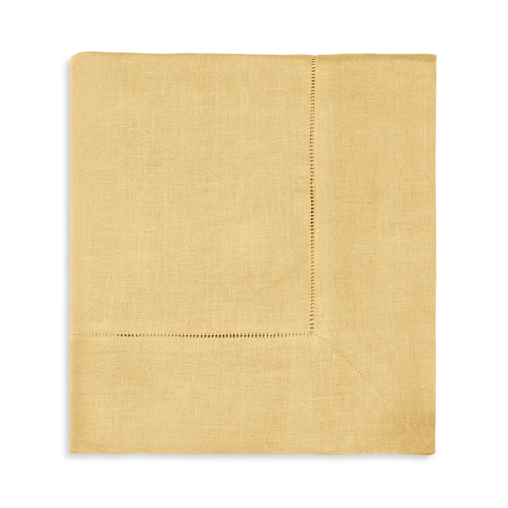 Beautiful tablecloth linens in bold solid colors, with a row of hemstitching detail for an elegant dining table.