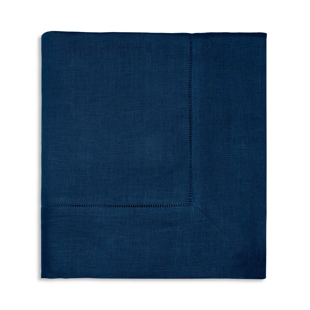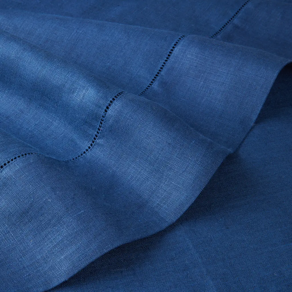 Beautiful tablecloth linens in bold solid colors, with a row of hemstitching detail for an elegant dining table.