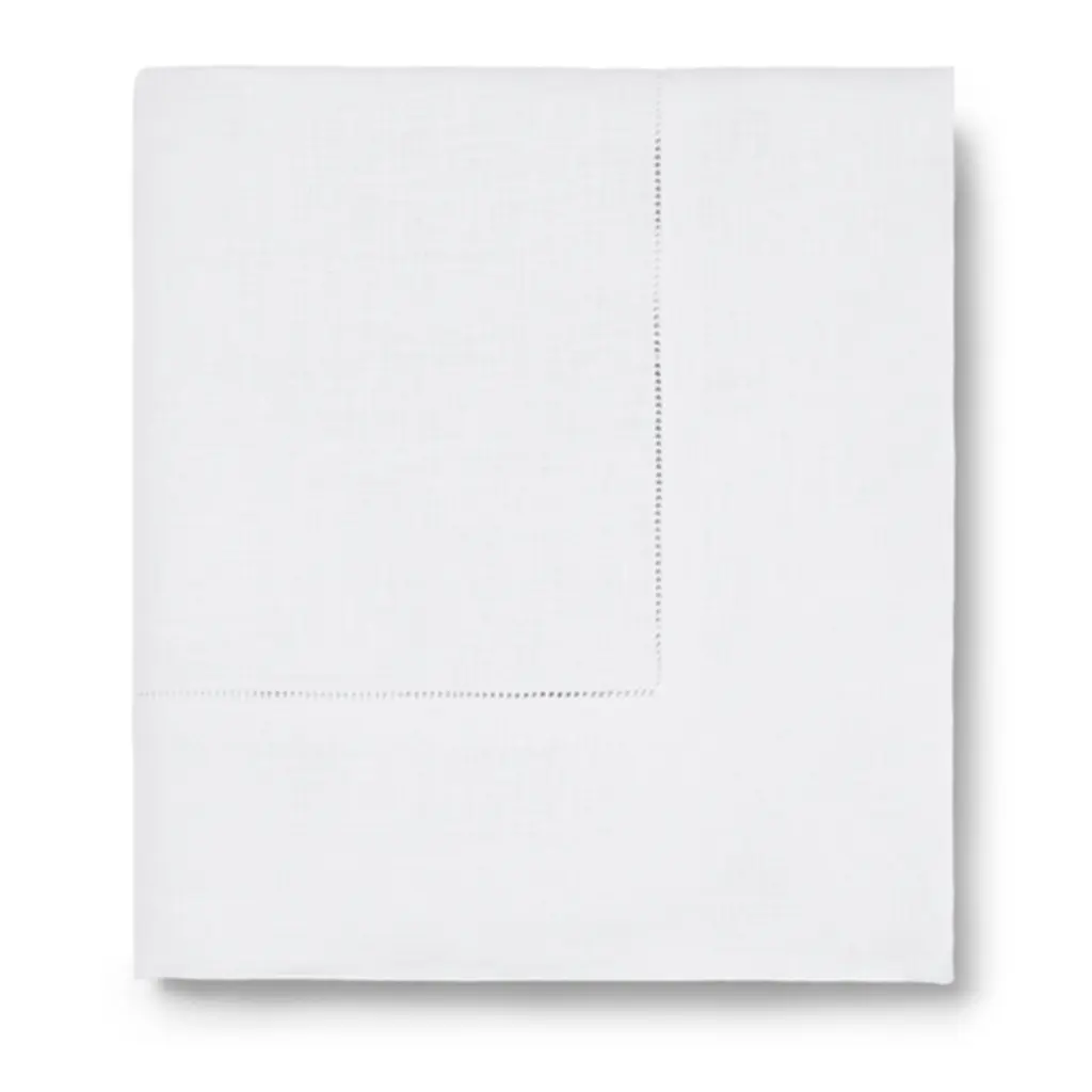 Beautiful tablecloth linens in bold solid colors, with a row of hemstitching detail for an elegant dining table.