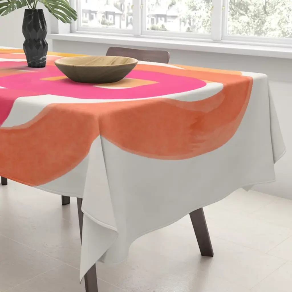 Funky Retro 70's Style Pattern Orange Pink Greindent Striped Circles Mid Century Colorful Pop Art Tablecloth