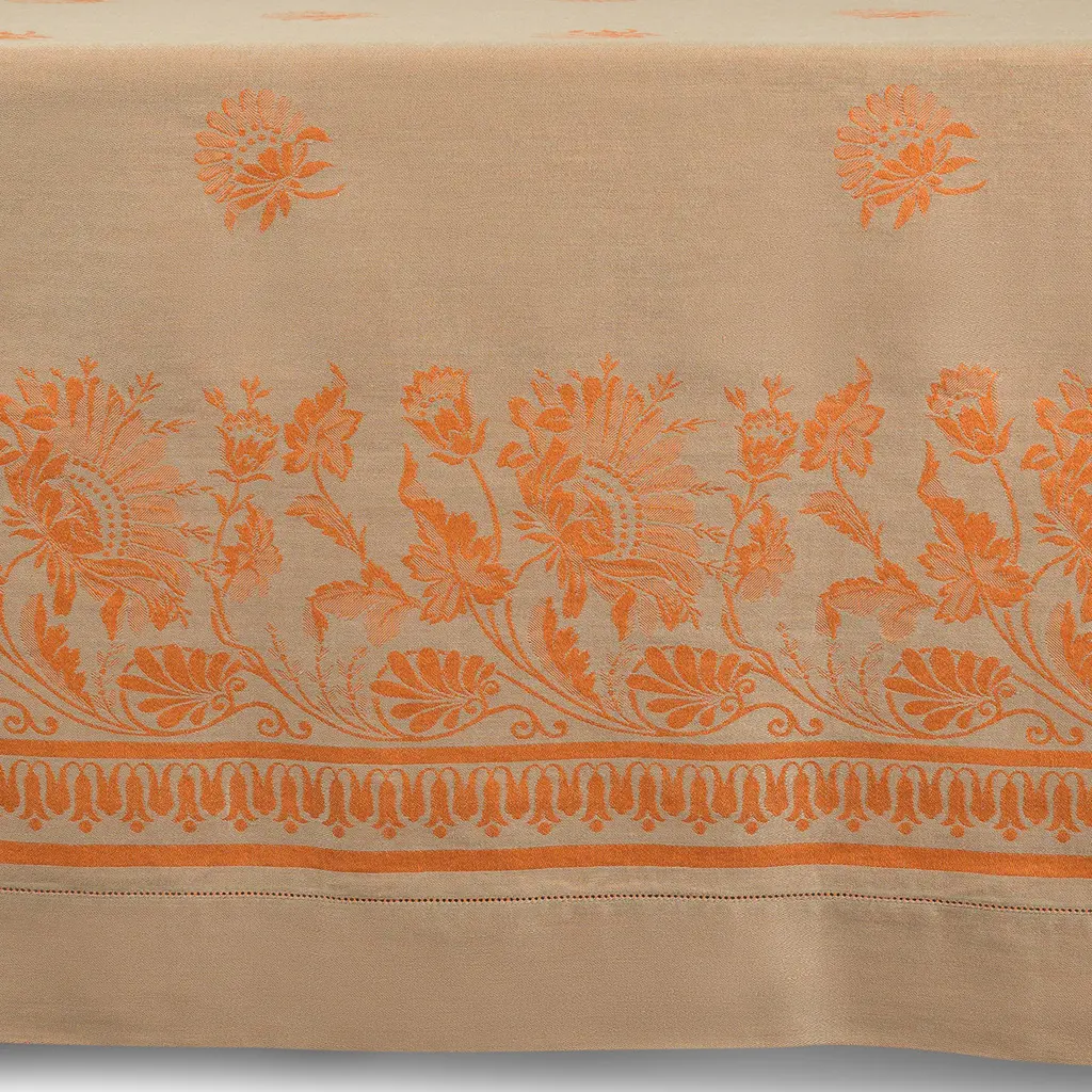 Borrowed from Rivolta Carmignani's historical archives, a stunning floral motif inspired by a typical Italian garden in bloom marks this precious jacquard tablecloth. The prized Fiandra linen fibers it is woven from ensure great freshness, while the hemstitched borders speak to the design's traditional waving heritage. Please contact the Concierge for variants and care instructions.