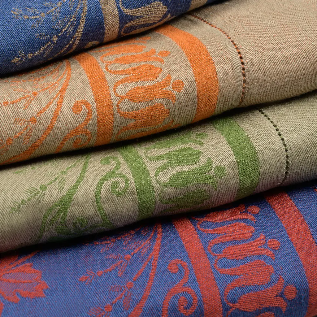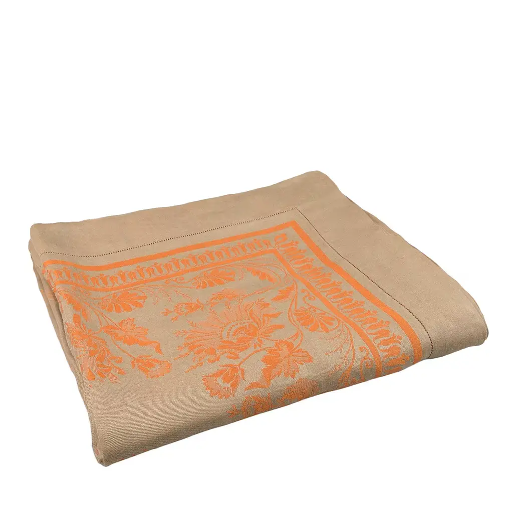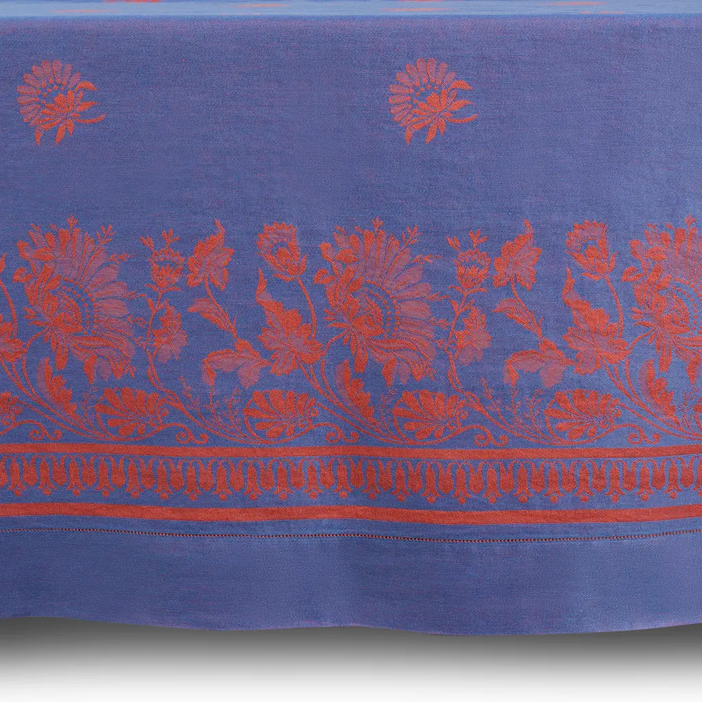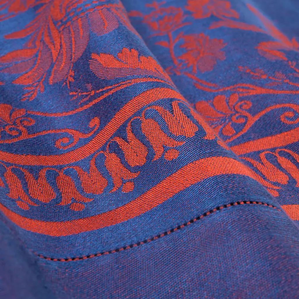A superb floral motif borrowed from Rivolta Carmignani's historical archives and here offered in a vibrant Marsala-red hue lends this precious blue tablecloth in 100% Fiandra linen its romantic allure. A minute hemstitch detailing underlines the borders' cleanliness while confirming the piece's traditional roots. Please contact the Concierge for variants and care instructions.