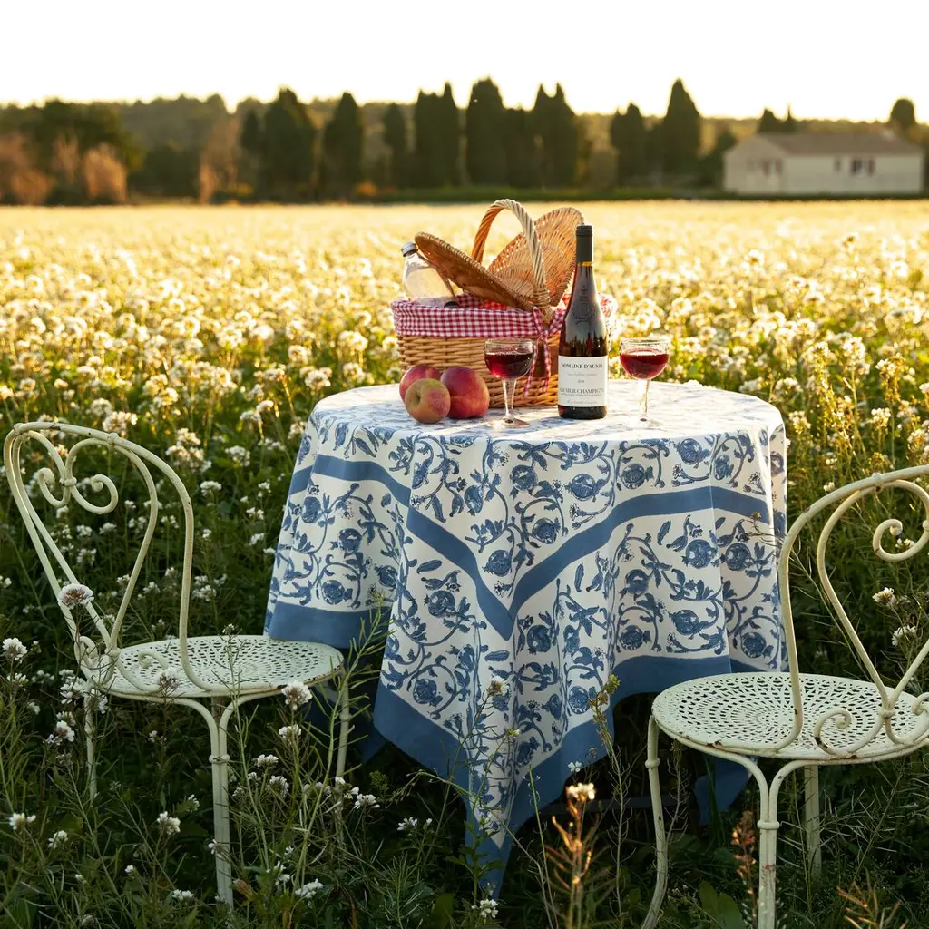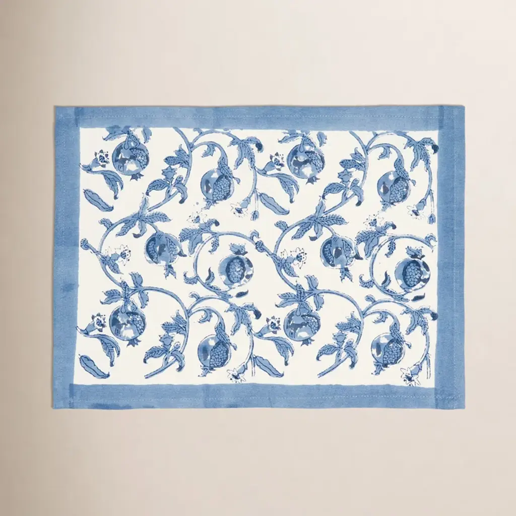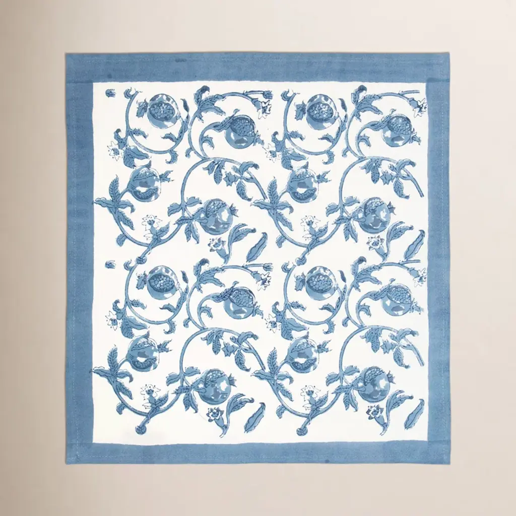 Featuring a delicately intertwined floral pattern with iconic pomegranates, the Granada collection makes a tranquil, richly colored complement to any table. Suitable for formal, festive, and casual events alike, this high-quality linen foregrounds a classic motif with French country styling, and has been hand-printed by skilled artisans using a time-honored technique.