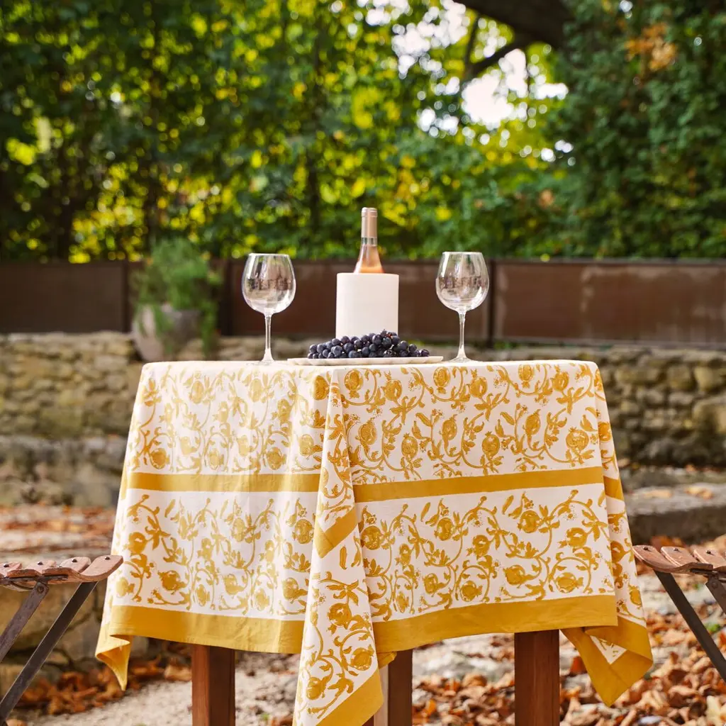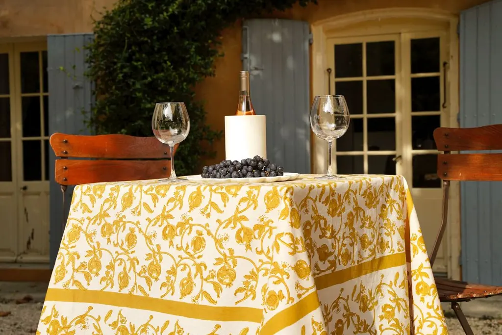 Featuring a delicately intertwined floral pattern with iconic pomegranates, the Granada collection makes a tranquil, richly colored complement to any table. Suitable for formal, festive, and casual events alike, this high-quality linen foregrounds a classic motif with French country styling, and has been hand-printed by skilled artisans using a time-honored technique.