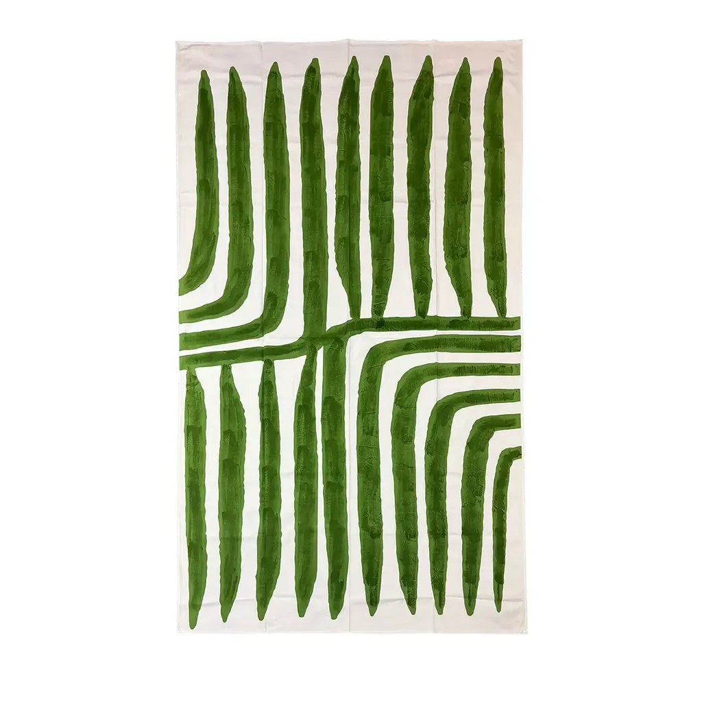Hand-Painted Green Cotton Tablecloth