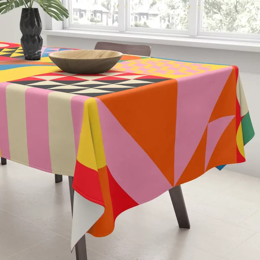 Happy Colorful Geometric Tropical Jungle Tablecloth