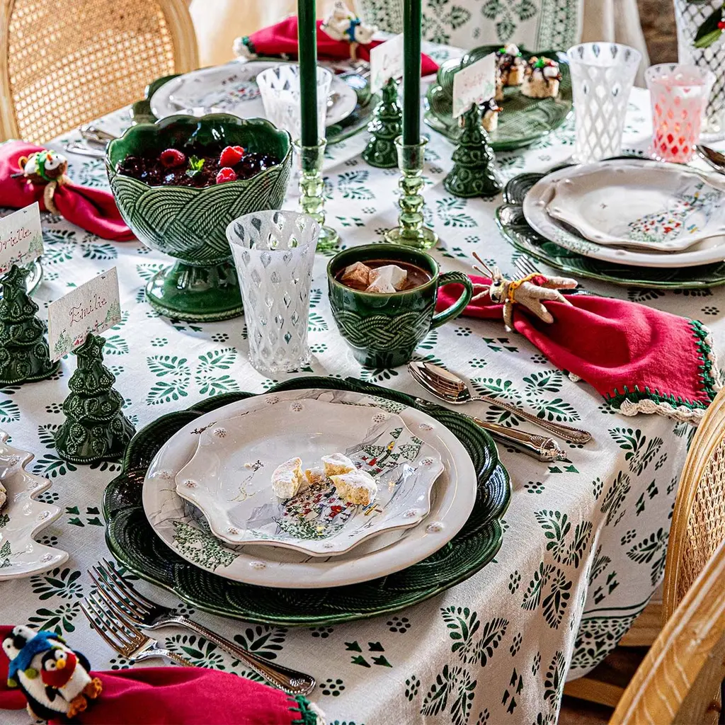 Made of 100% linen and inspired by traditional European hand-painted tiles, this fresh and folkloric pattern makes the tablecloth a beautiful backdrop for entertaining in all seasons. Style it as formally or casually as you like—from winter holidays to summer cookouts, and every day in between.