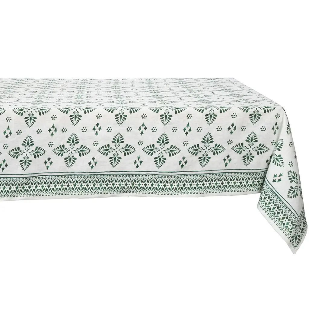 Iberian Border 60" X 120" Linen Tablecloth, Evergreen