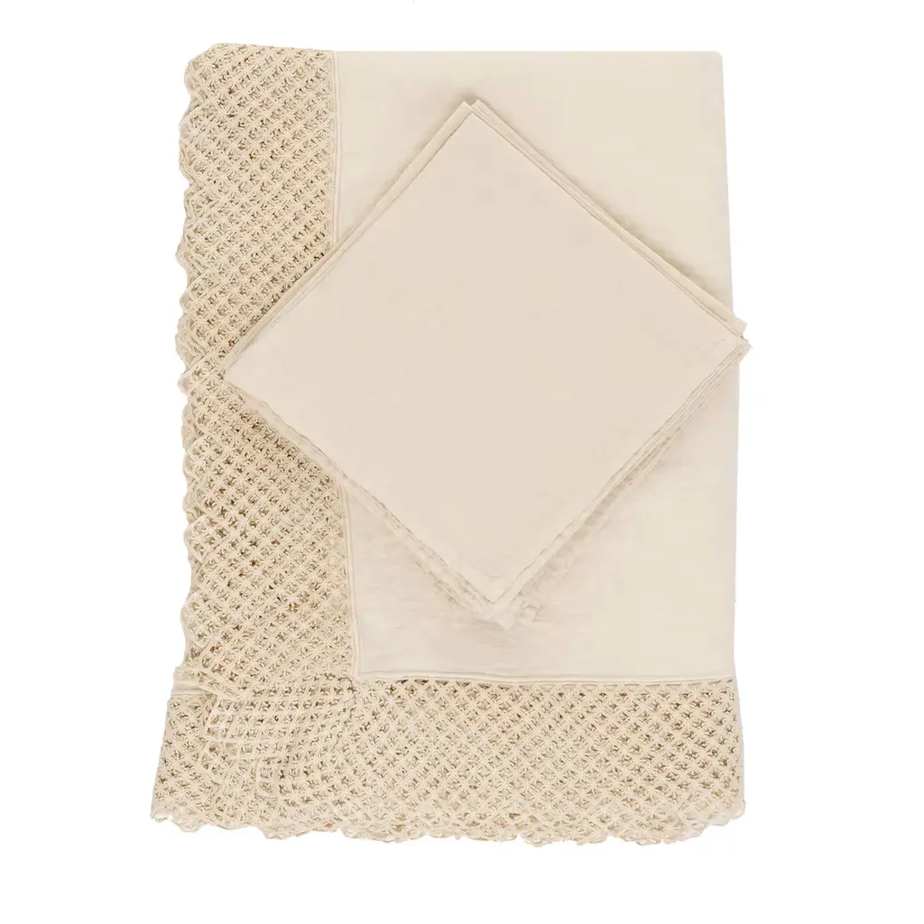 Linen Set Of Tablecloth And 16 Napkins With Macramè By Once Milano