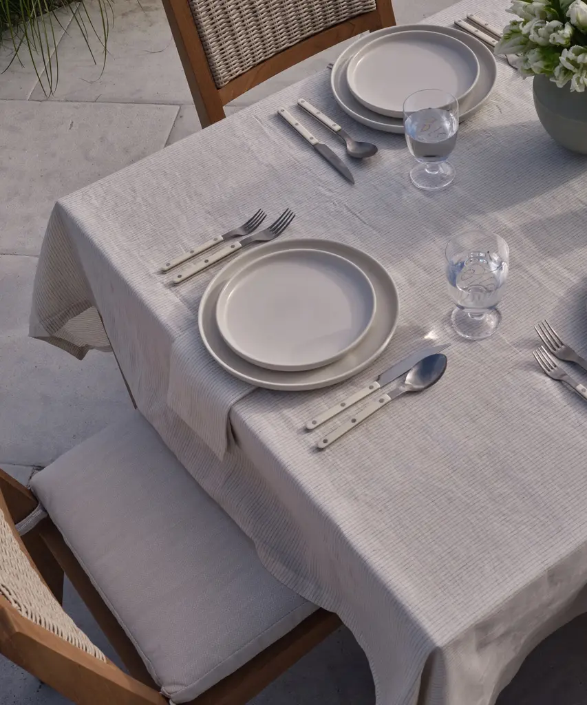 Linen Tablecloth Black Stripe This soft linen tablecloth brings a classic and refined touch to any tabletop. 100% linen. Made in Portugal.
