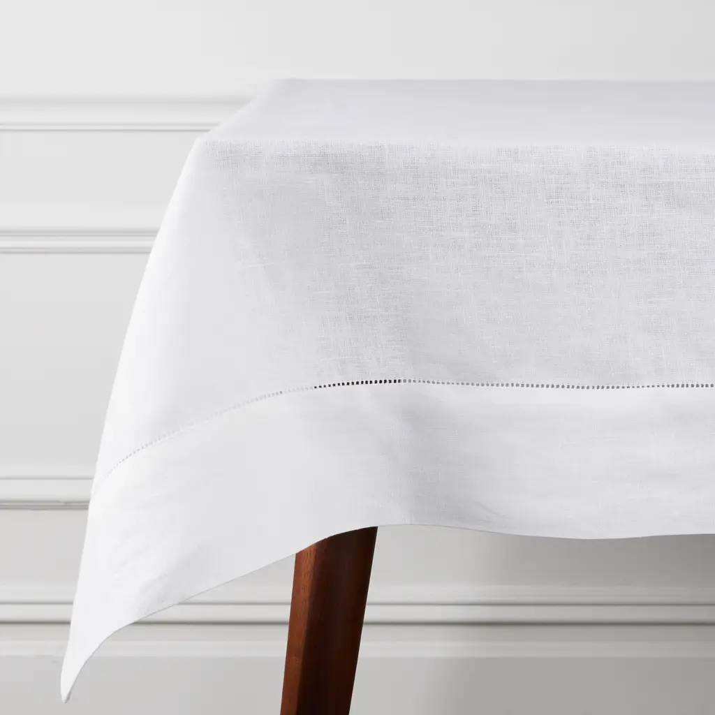 A classic sateen border adorns the tablecloth, placemat and napkins of Matouk's iconic and best-selling Lowell linen collection.